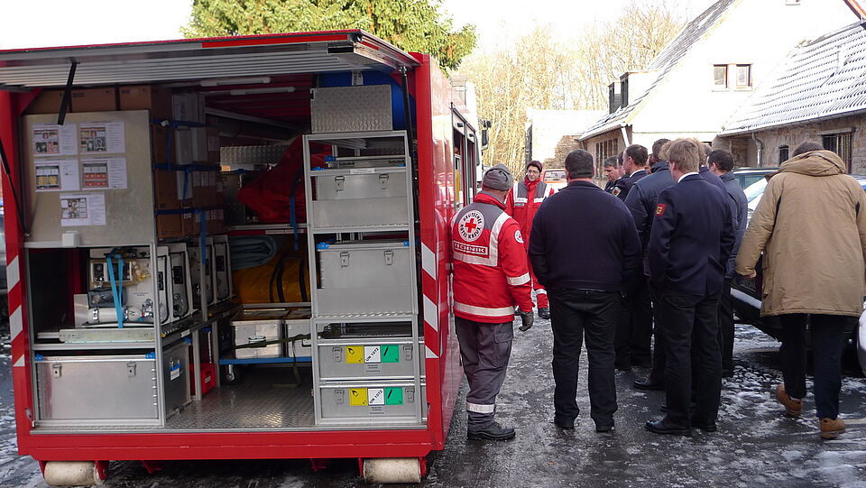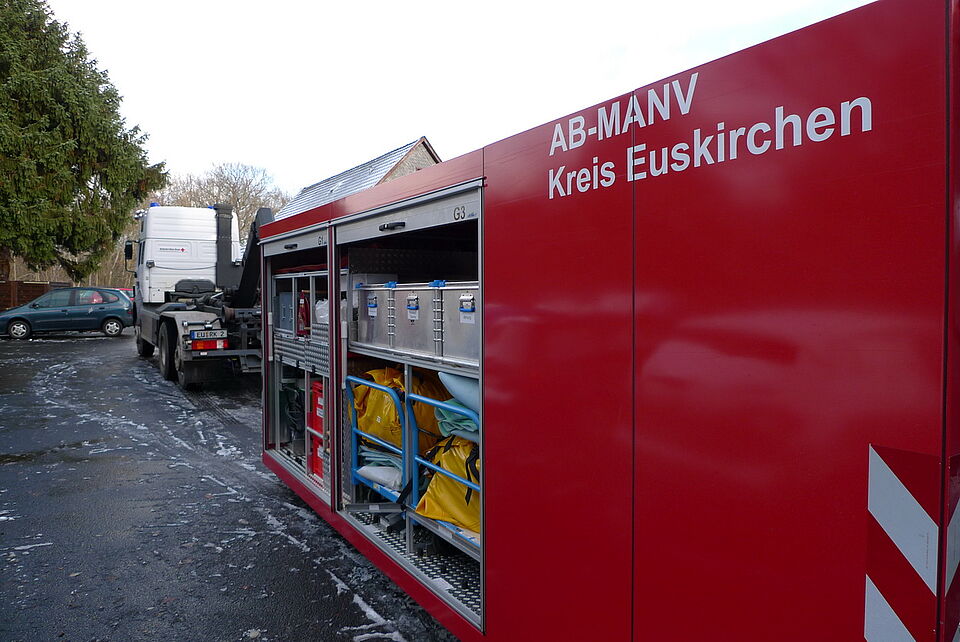 Und zwar zusätzlich zu den Rettungsfahrzeugen und Gerätefahrzeugen des Rettungsdienstes im Kreises Euskirchen, des Roten Kreuzes und der Malteser. Mit Hilfe des Gesamtpaketes einschließlich Abrollcontainer kann so auch bei größeren Schadenslagen den Betroffenen schnell geholfen werden.