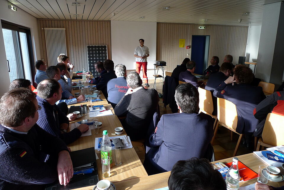 Bei einer Tagung der Führungskräfte der Blankenheimer Feuerwehr stellten Simone Pesch und Heinrich Weinand vom Roten Kreuz den Abrollcontainer für den Massenanfall von Verletzten vor. Bei größeren Unfällen oder anderen Schadensereignissen mit vielen Verletzten kommt dieser Container zum Einsatz.