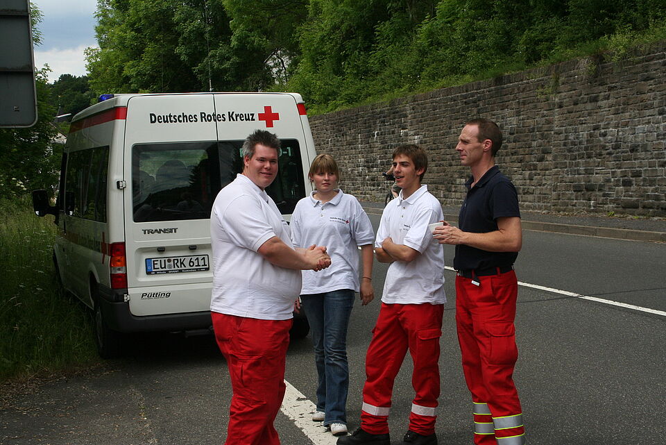 Auch in diesem Jahr war das Rote Kreuz im Kreis Euskirchen wieder zahlreich vertreten, um für die Sicherheit der Teilnehmer zu sorgen. Mehrere Rettungswagen, Streckenposten und ein Notarzt waren vor Ort.