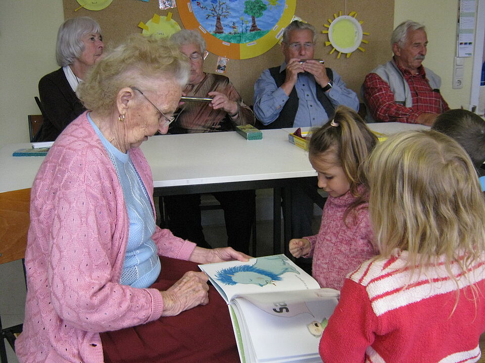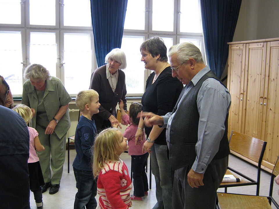 Es wurde gesungen, musiziert, gespielt. Die Mitglieder des Mundharmonikavereins ließen die Kinder sogar in die Instrumente blasen, alte Kinderspiele wie „Alle Vögel fliegen hoch“ wurden gespielt und bei „Brüderchen komm tanz mit mir“ hielt es keinen länger auf den Stühlen.