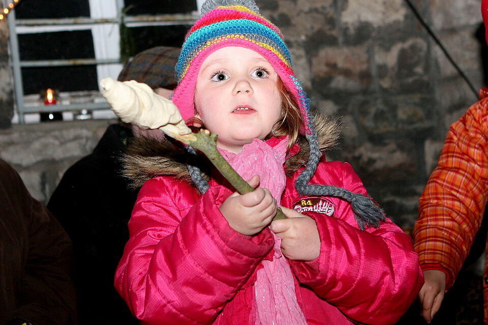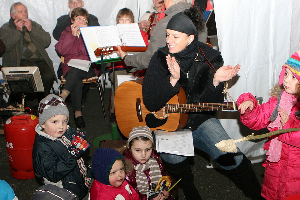 „Wir wollen uns mit dem Fest gemütlich auf die Adventszeit einstim-men“, sagte Kindergartenleiterin Anja Leitner und freute sich über die tatkräftige Unterstützung der vielen Helfer. Mit musikalischer Unterstüt-zung des Mundharmonikavereins Blankenheimerdorf sangen Jung und Alt Laternenliede an den Tischen und Bänken, die von der Freiwilligen Feuerwehr zur Verfügung gestellt wurden.