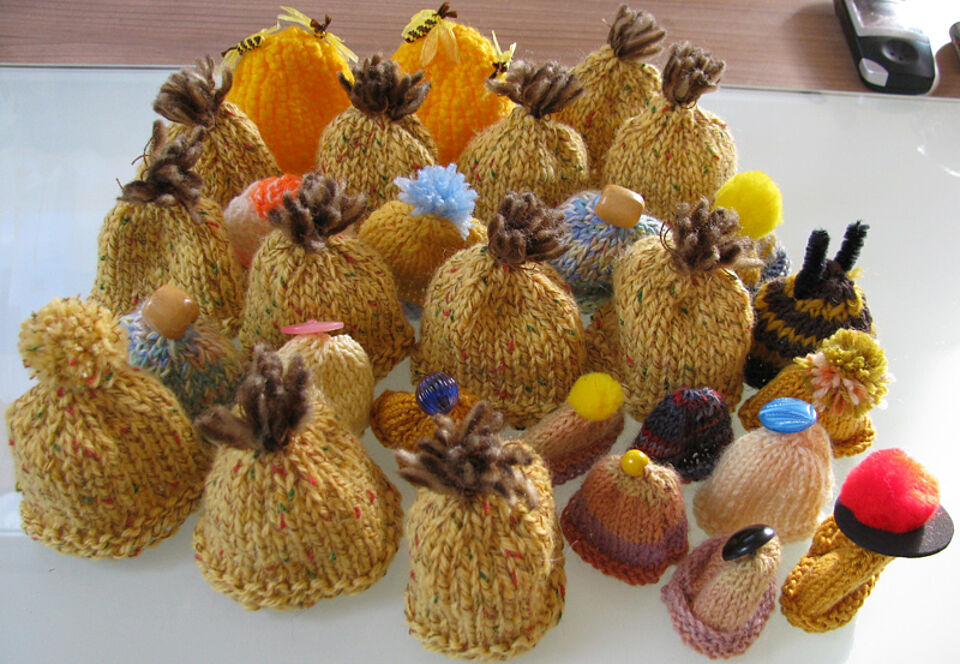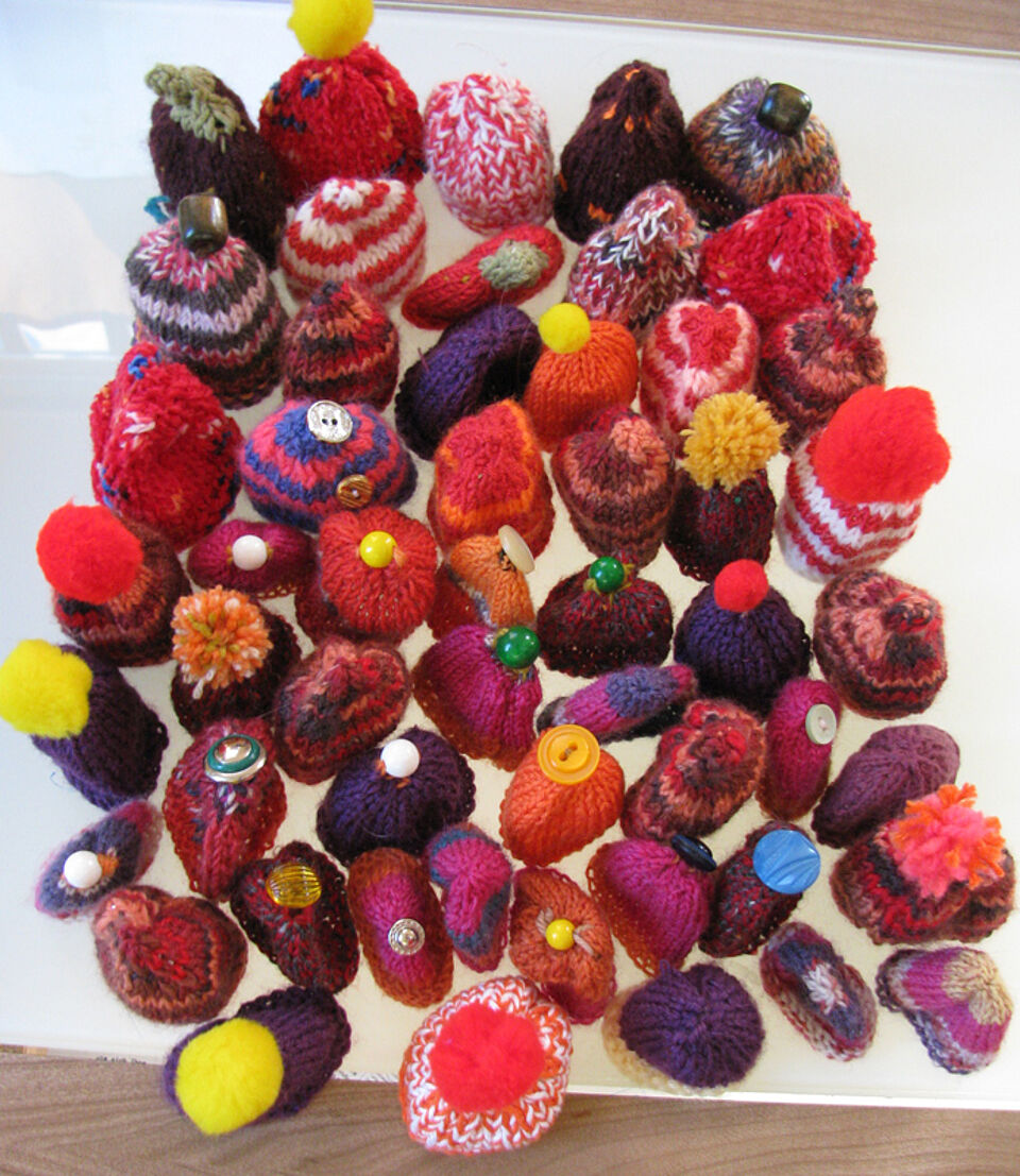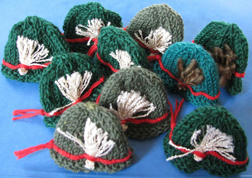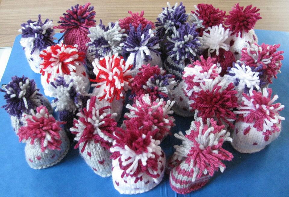 Die Jugendrotkreuzgruppe aus Dahlem und viele andere fleißige Helferinnen und Helfer haben sowohl bei den Stricknachmittagen als auch von Zuhause aus beim Stricken der kleinen Mützchen geholfen. Manche erlernten hierdurch das Stricken, und die Strickerfahrenen freuten sich über eine willkommene Abwechslung zu den sonst zu strickenden Wollsocken für den Winter.