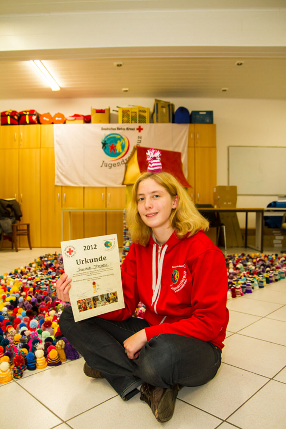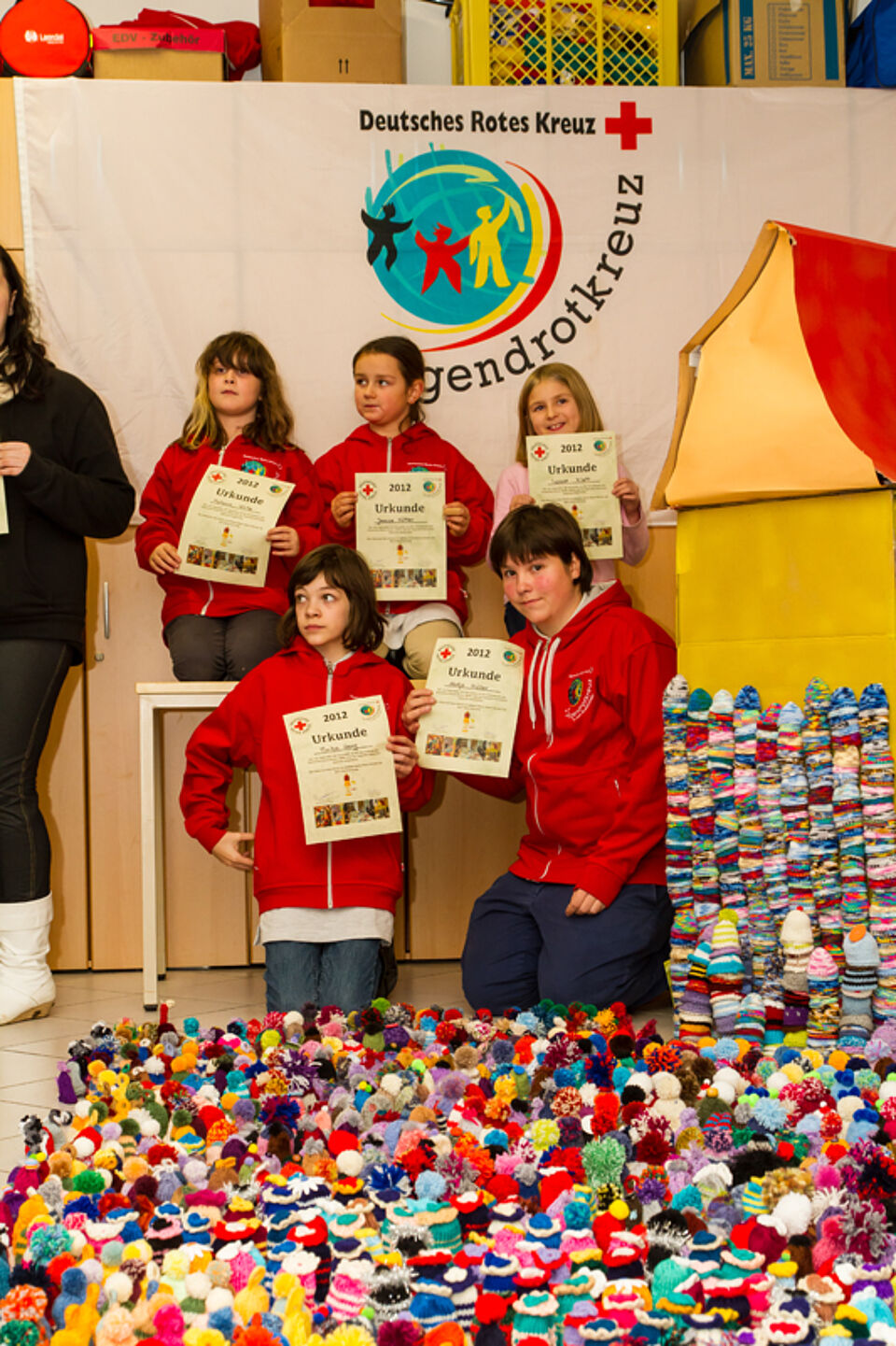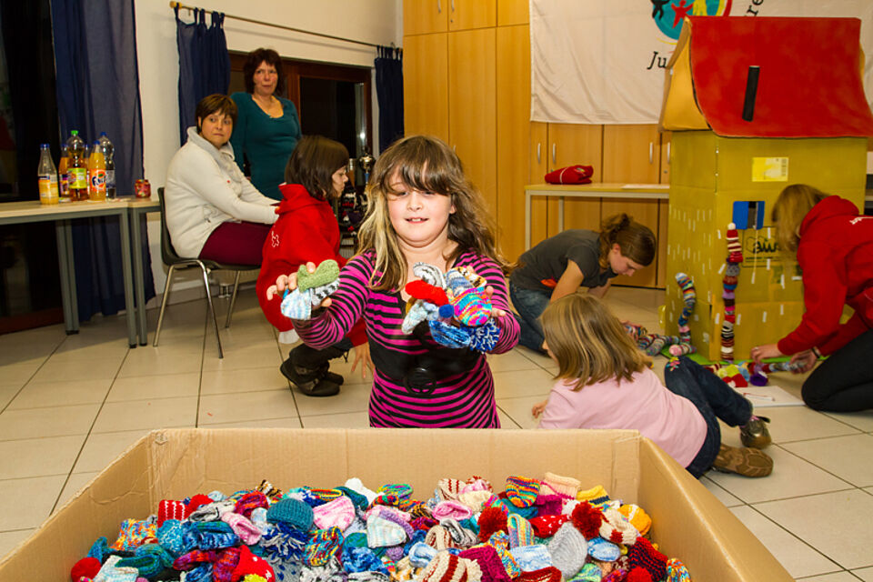 Nachdem die Gruppe des Jugendrotkreuz Dahlem letztes Jahr bereits 681 Mützchen erstrickt hatte, so hatte man sich in diesem Jahr zum Ziel gesetzt, die 1.000 Mützchen zu erreichen.