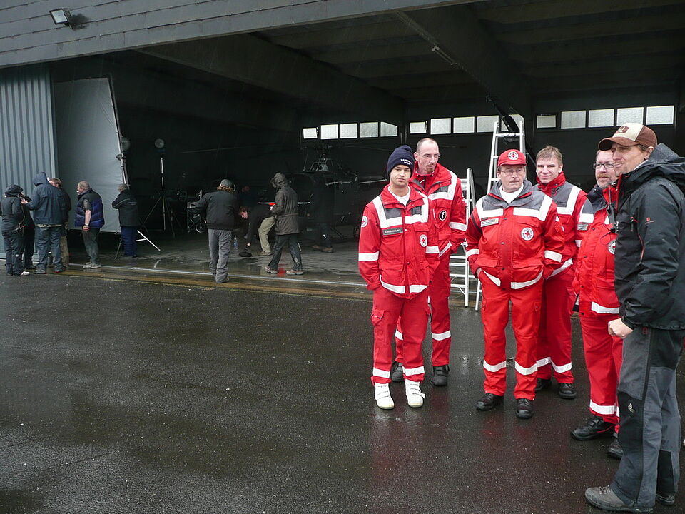 Bild DRK ZR | Noch einmal von vorne. Dieser Drehtag war sehr interessant. Er war aber auch ganz schön ungewohnt und anstrengend. Warten, Achtung, Action... Warten... Damit am Ende alles stimmt und alle zufrieden sind.