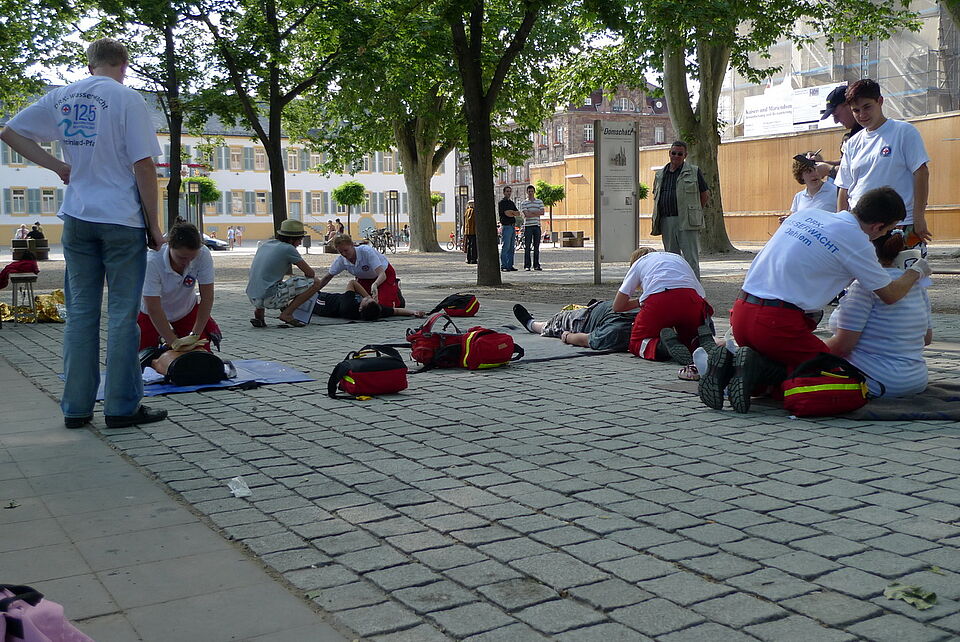 Bei herrlichem Sonnenschein ging es nach dem Mittagessen auf den Erste-Hilfe-Parcours. Dieser führte durch die Innenstadt, am Kaiserdom und am Rheinufer vorbei.