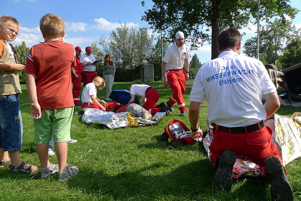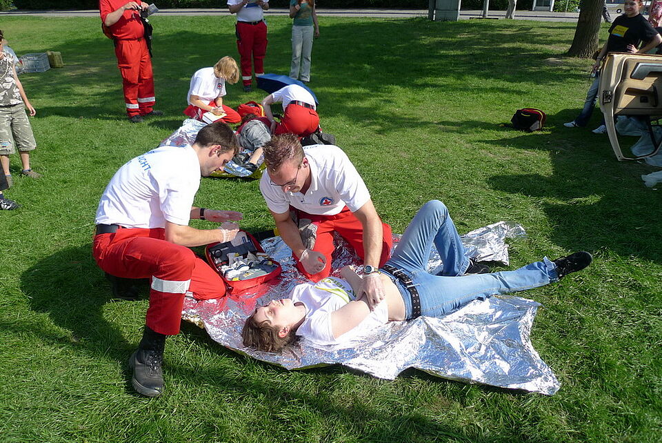 Die Teilnehmer wurden an den 11 Wettbewerbsstationen mit sehr realistisch dargestellten Unfallszenarien konfrontiert. So wurde u.a. ein Unfall zwischen Auto und Fahrradfahrerin, ein Grillunfall, ein Starkstromunfall und ein Bootsunglück inszeniert.