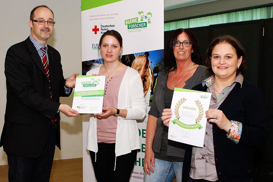 Mit der Auszeichnung „Haus der kleinen Forscher“ würdigt die gleichnamige Stiftung Kindertagesstätten und Grundschulen, die sich in besonderem Maße der frühkindlichen Bildung in den Bereichen Naturwissenschaften und Technik widmen. Mit Workshops für die Erzieher, Arbeitsunterlagen, jährlichen Aktionstagen und einer umfangreichen Internetplattform fördert die Stiftung „Haus der kleinen Forscher" dieses Engagement. Im Kreis Euskirchen sind das Deutsche Rote Kreuz und das Regionale Bildungsbüro des Kreises Euskirchen die lokalen Kooperationspartner der bundesweit tätigen Stiftung.