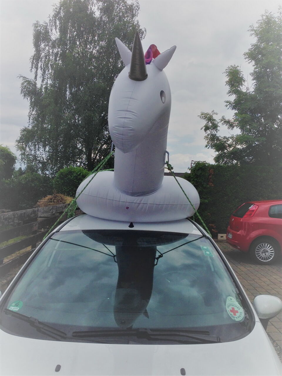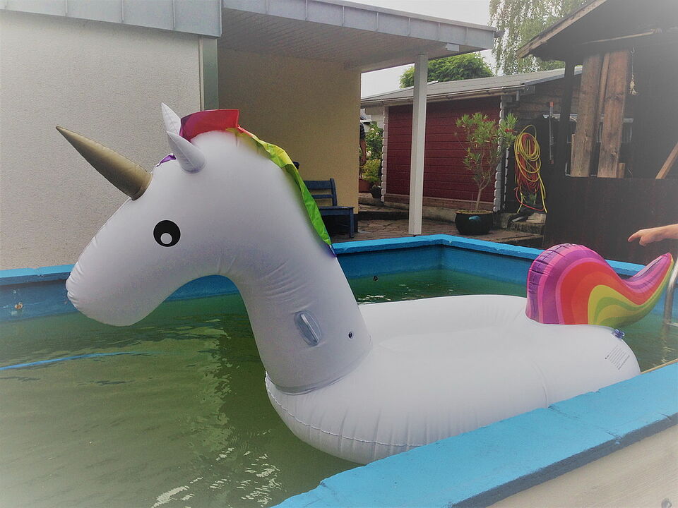 Beim Grillen und Baden wurden Gespräche geführt, Erfahrungen ausgetauscht und neue Ideen besprochen. Als Überraschungsgast war ein Einhorn „eingeflogen“ bzw. eingefahren worden. Für diese Überraschung möchten wir uns ganz herzlich bei „Edeka Steilen“ aus Flamersheim bedanken, die uns dieses zur Verfügung stellten. Mit dem Einhorn wurde im Wasser geplanscht und im Anschluss bei Salaten, Gegrilltem uvm. die Ferien begonnen. Nicht zu vergessen waren auch die leckeren alkoholfreien Cocktails, die uns Uli zubereitete.