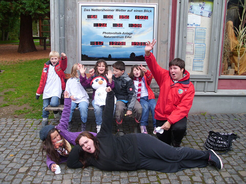Um 10 Uhr wurden wir bereits im Naturzentrum in Nettersheim erwartet. Hier wartete das Aktivprogramm „Regentanz und Sonnenuhr (Wetter – Wie funktioniert das? Experimente zu Sonne, Wind und Regen)“ auf die Mitglieder des Jugendrotkreuz Dahlem. In verschiedenen Experimenten konnten alle, trotz des nicht ganz trockenen Wetters, selbst draußen einige tolle Aktionen erleben. Das Thema „Wetter – Wie funktioniert das?“ passte gut zur derzeitigen Kampagne des Jugendrotkreuz und stand ganz unter dem Namen „Klimahelfer – Änder was bevor’s das Klima tut“.