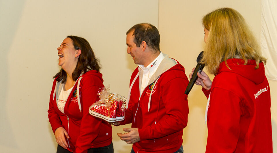 Bild DRK JS | Trotz der Anspannung vor der Wahl freuten sich die drei über die persönlichen Aufmerksamkeiten.