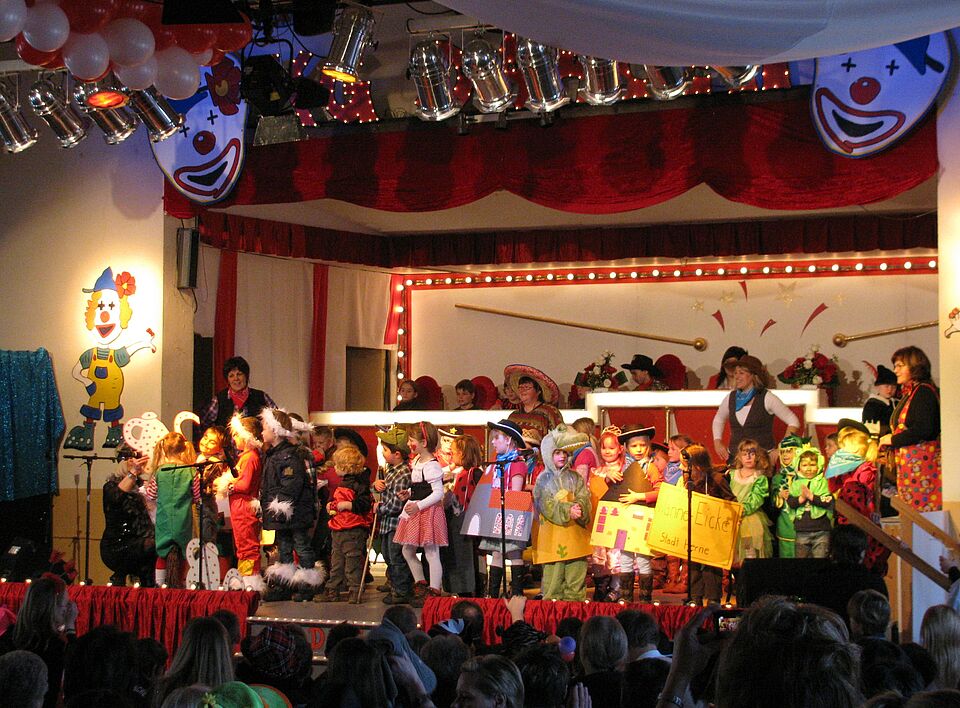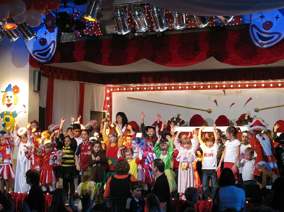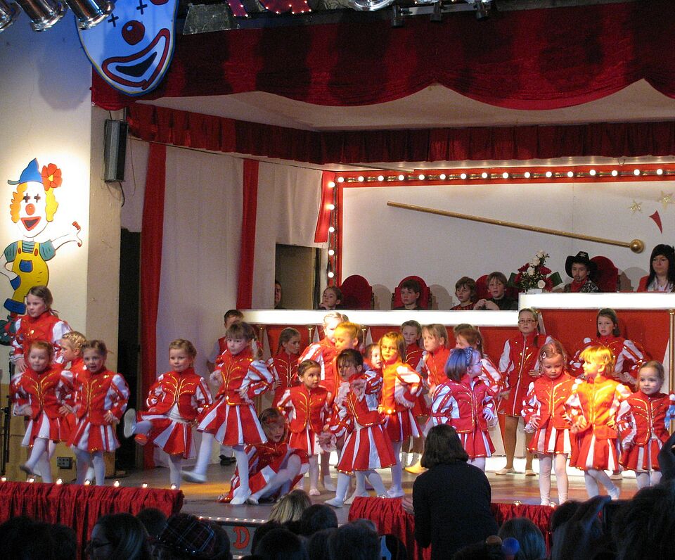 Das Motto „Eine Sitzung von Kindern für Kinder“. So gab es Sketche und Tänze in vielen Variationen. Von den Jüngsten aus dem Kindergarten Dahlem über Auftritte der Katholischen Grundschule Dahlem bis hin zu Auftritten der Garde aus der KG Dahlem. Insgesamt waren ca. 200 Kinder aktiv auf der Bühne beteiligt.