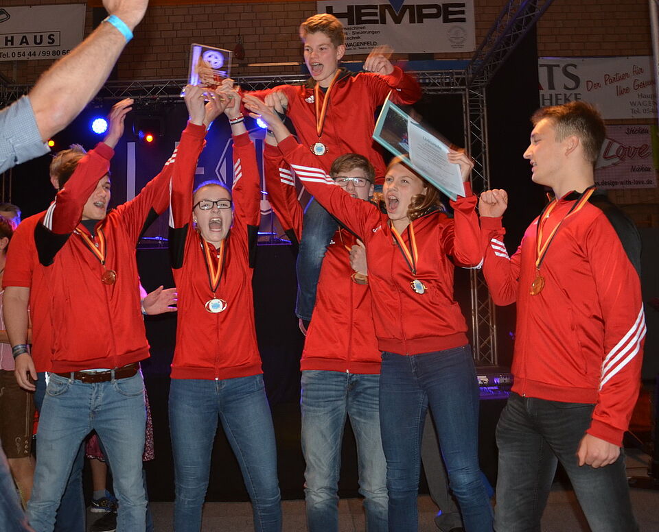 Dahlem - Am Wochenende vom 22.-24. September 2017 ging es für die DRK-Wasserwacht Dahlem mit 2 Jugendmannschaften, Altersklasse 2 und 3 (11-13 und 14-16 Jahre) zum Bundeswettbewerb Rettungsschwimmen für JRK-Gruppen in der Wasserwacht nach Wagenfeld (Niedersachsen).  Die beiden Mannschaften hatten im Frühjahr beim Landeswettbewerb in Mülheim an der Ruhr qualifiziert, um für den DRK-Landesverband Nordrhein auf dem Bundeswettbewerb anzutreten. Am Freitagabend kamen sie nach 5 Stunden Fahrt in der Oberschule Wagenfeld an, wo alle gemeinsam in einem Klassenraum übernachteten. Am Samstagmorgen startete der Wettbewerb mit viel Aufregung. Neben dem Schwimmen der Rettungsschwimmstaffeln, mussten die Teams auch Erste-Hilfe-Aufgaben sowie Aufgaben zur Kreativität über das Deutsche Rote Kreuz bewältigen. Beim Abendessen waren alle Beteiligten erschöpft aber aufgeregt, wegen der bevorstehenden Siegerehrung. Diese verlief überaus spannend: Die Jugend 2 erreichte schließlich den hervorragenden 3. Platz und die Jugend 3 wurde Deutscher Meister! Die Freude darüber war sehr groß und viele wurden von ihren Gefühlen überwältigt. Die Jugend 2 freute sich besonders, da sie trotz eines krankheitsbedingten Ausfalls noch einen so guten Platz erreichten konnten. Die Jugend 3 hatte zuvor eine Wette abgeschlossen, dass die Mädchen den Jungs eine Haarsträhne pink färben durften, wenn sie den 1. Platz erreichten. Die Wette wurde noch am selben Abend eingelöst. Am Ende  kam die Wasserwacht Dahlem am Sonntagmittag nach einem schönen und erfolgreichen Wochenende nach Dahlem zurück, wo sie von Eltern und Freunden herzlich empfangen wurden. Den Mannschaften gehörten an: Teilnehmer AK 2: Fiona Hase, Torben Kampmann, Carina Klinkhammer, Christopher Pohl, Anna Wawer, Laetitia Weber Trainer: Christiane Wawer & Paul Hupperich Betreuer: Simon Hase Ergänzungsschwimmer: Karla Göser, Jana Schmitz, Maurice Mertens Teilnehmer AK 3: Jule Ehlen, Timo Joepen, Luka Kampmann, Tobias Meyer, Juliane Reiners, Noah Sütsch Trainer: Carina Meyer &Christian Wawer Ergänzungsschwimmer: Linda Göser, Mira und Roman Wawer