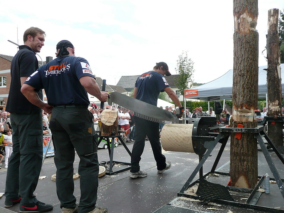 Bild DRK ZR | An der Rathausbühne konnten starke Männer beim Holzfällerwettstreit beobachtet werden.