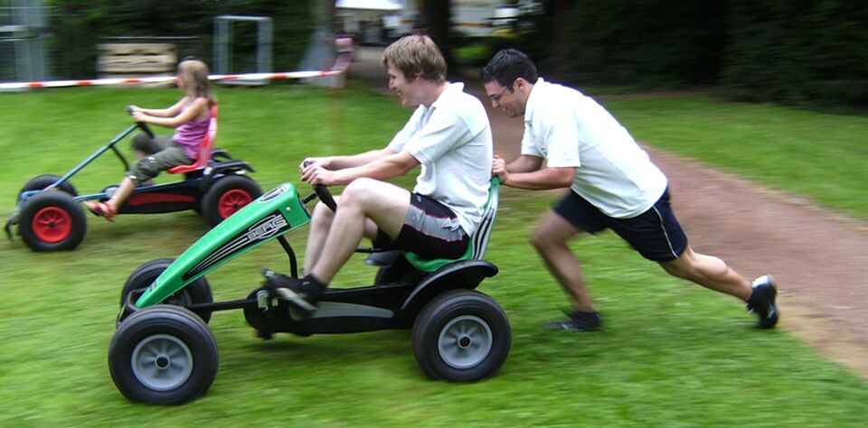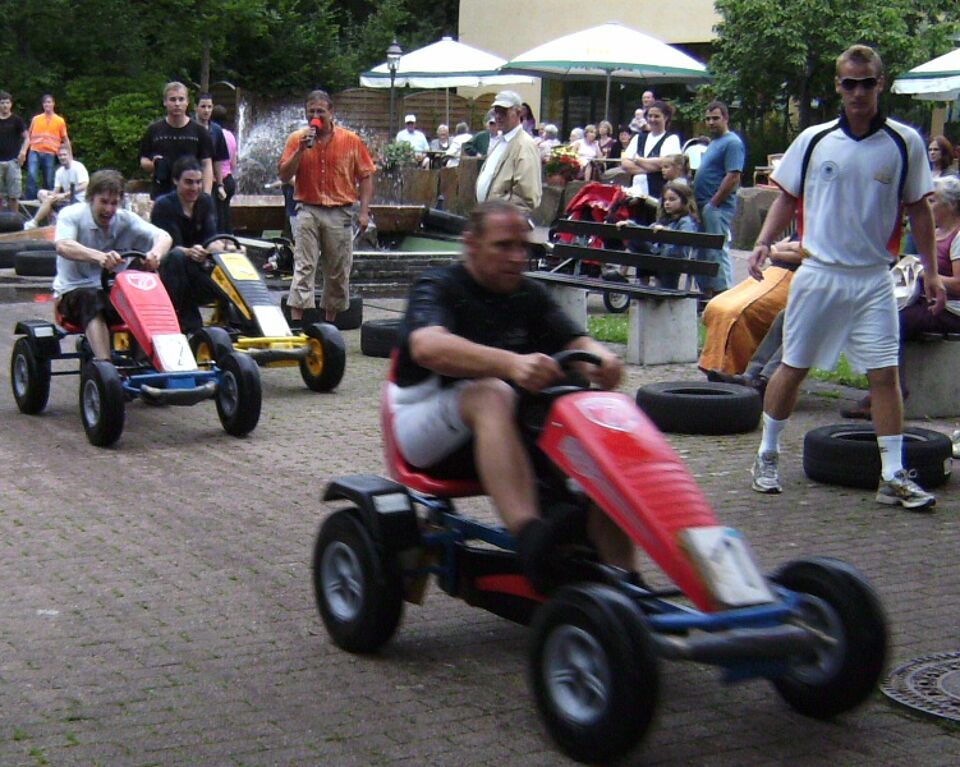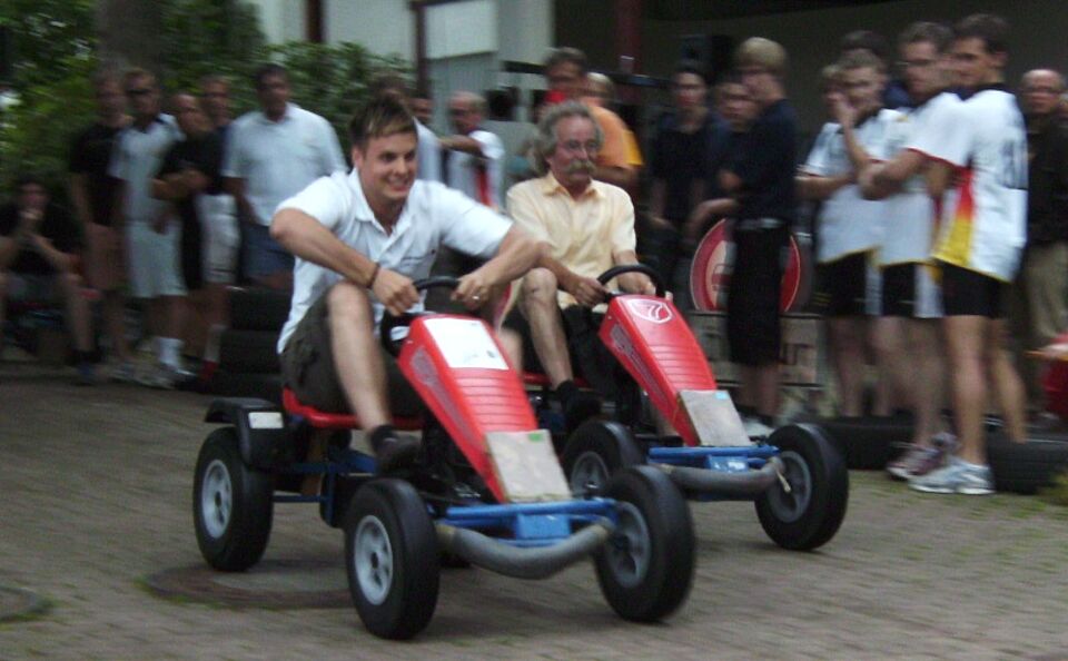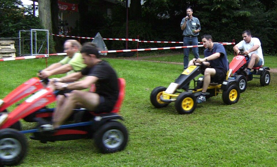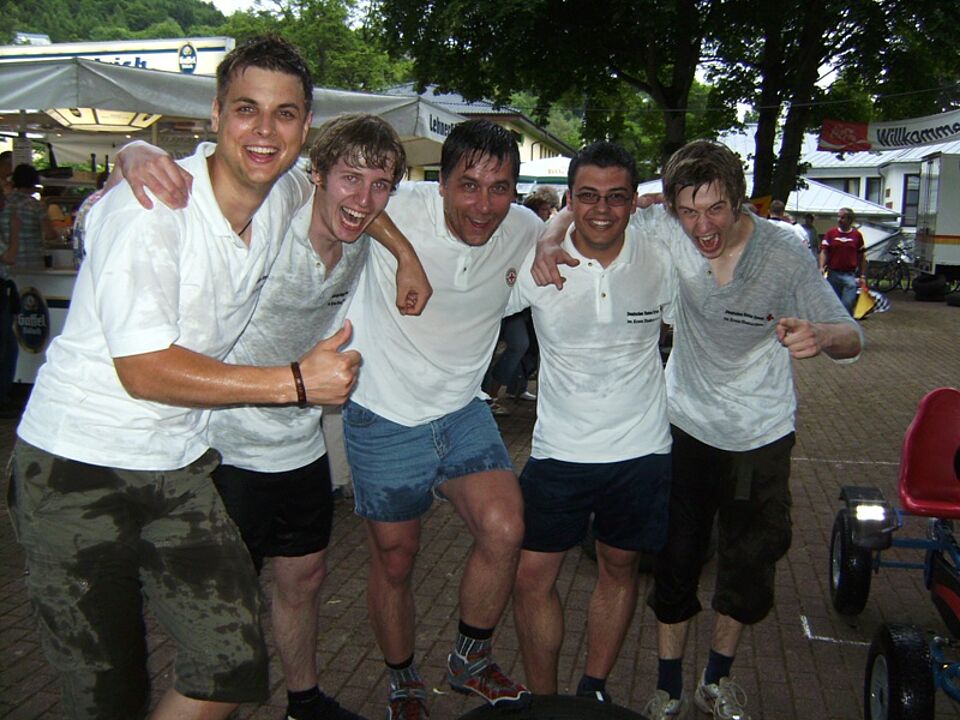 Nicht nur zugucken, sondern auch mitmachen, hieß es heute für sechs Rotkreuzler der Gemeinschaft Schleiden. Sie praktizierten nämlich ein Stück Gemünder Vereinskultur und nahmen am "Großen Preis von Gemünd" teil. Das ist ein traditionelles Kettcarrennen, das die Gemünder Vereine untereinander austragen. Spaß und Sportsgeist lagen wieder einmal nah beieinander...