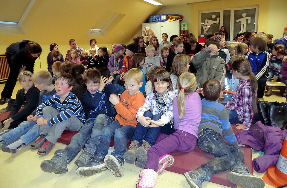 Rund um das und im Kita-Gebäude wurden weihnachtliche Deko-Artikel wie selbst gebastelte Advents- und Türkränze, Gestecke und mehr angeboten. In der „Weihnachtswerkstatt“ konnten die Kinder auch selbst kreativ werden und etwa Lebkuchen verzieren oder Weihnachtstüten basteln. Für spannende Unterhaltung sorgte beim Weihnachtsmarkt die Kinderlesung mit Nina ebenso wie eine Aufführung des Puppentheaters „Spielbar“. Unter anderem dafür, dass auch im Außenbereich alles in festlichem Glanz erstrahlte, sorgte die KEV, die die kostenlose Stromversorgung spendierte. Fleißige Küchenhelfer kümmerten sich mit Glühwein, Kaffee, Kuchen, Fritten, Würstchen und Reibekuchen um das leibliche Wohl der Besucher.
