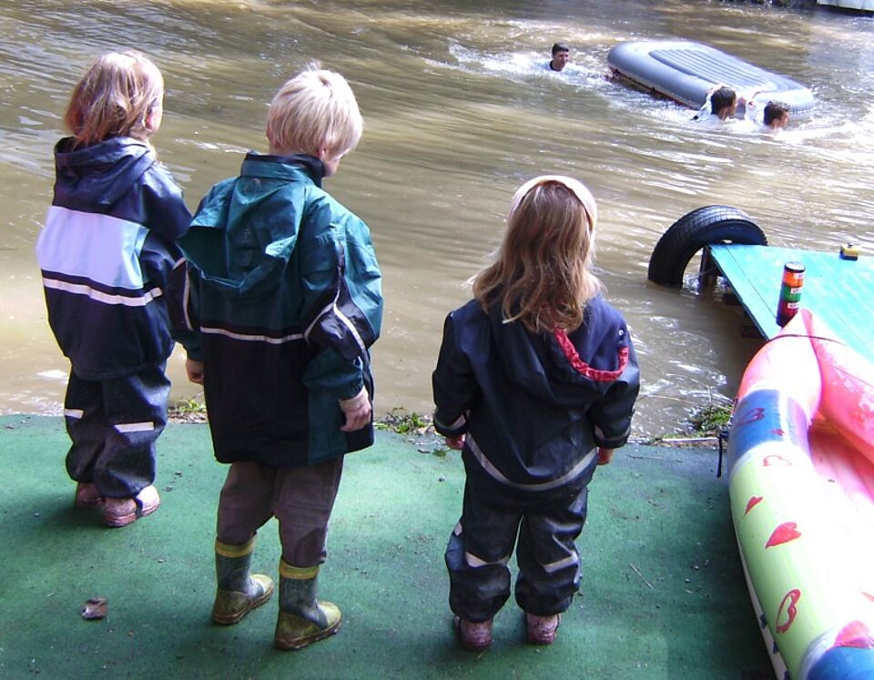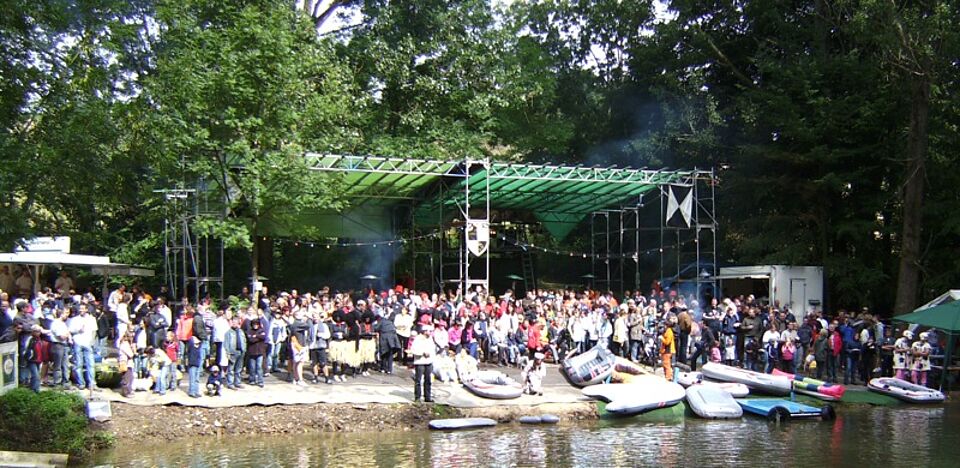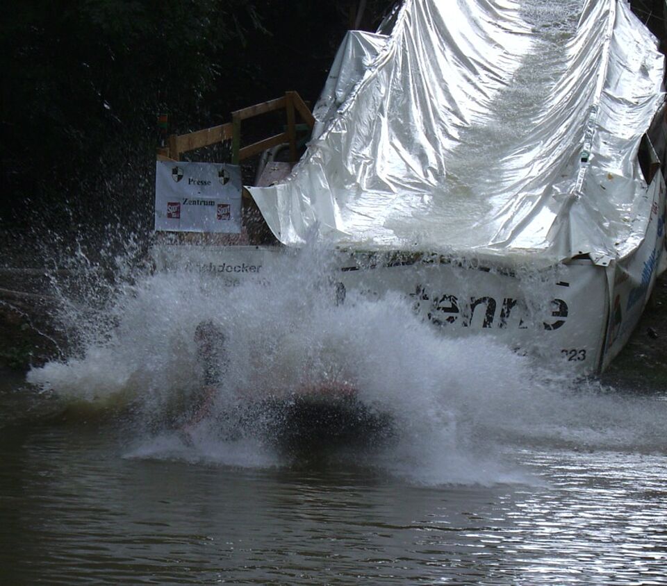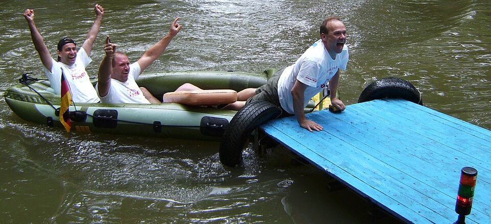 Egal wie, Hauptsache runter und quer über den Teich. Das war zumindest augenscheinlich die meist vertretenste Strategie der 66 Drei-Mann-Teams beim Schlauchbootrennen. Der Erfolg war unterschiedlich, der Spaß riesig.