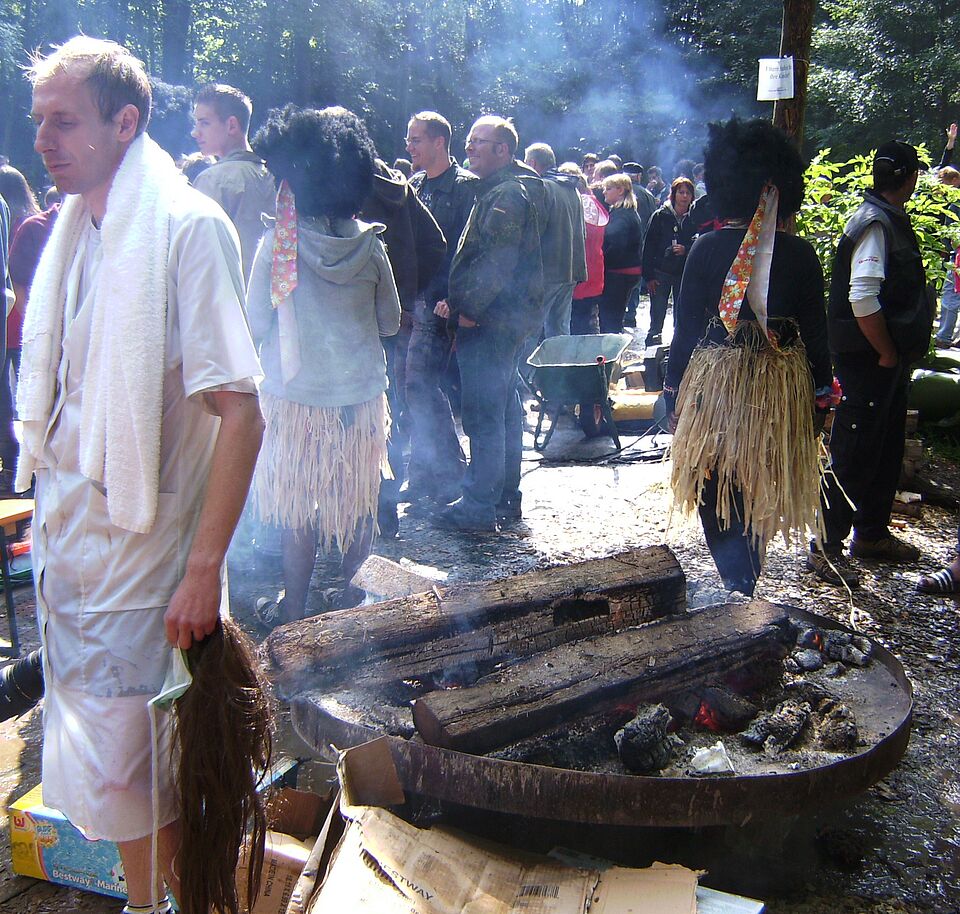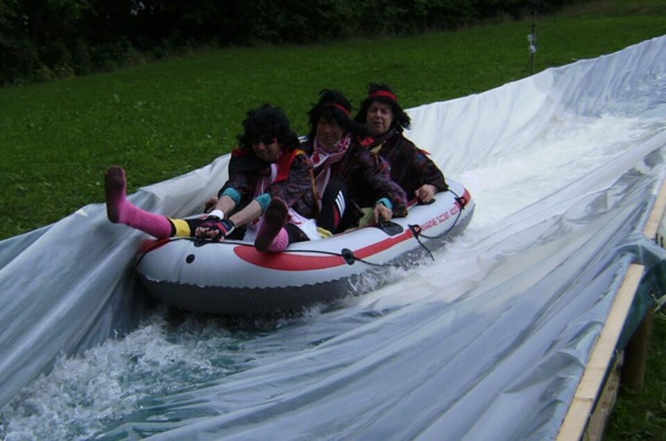 Dieses Jahr wurde zusätzlich zum Schnelligkeitswettbewerb auch ein Kostümwettbewerb ausgerichtet. Dementsprechend bunt war das Starterfeld. Von Kühen über Jamaikaner bis zu Seniorenschwimmteams war alles vertreten. Die Sieger waren hier die „Schokoküsse“. Mit Kokosnuss-Bikinis und Baströcken konnten sie die Jury der Dreiborner Junggesellen beeindrucken.