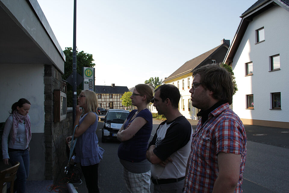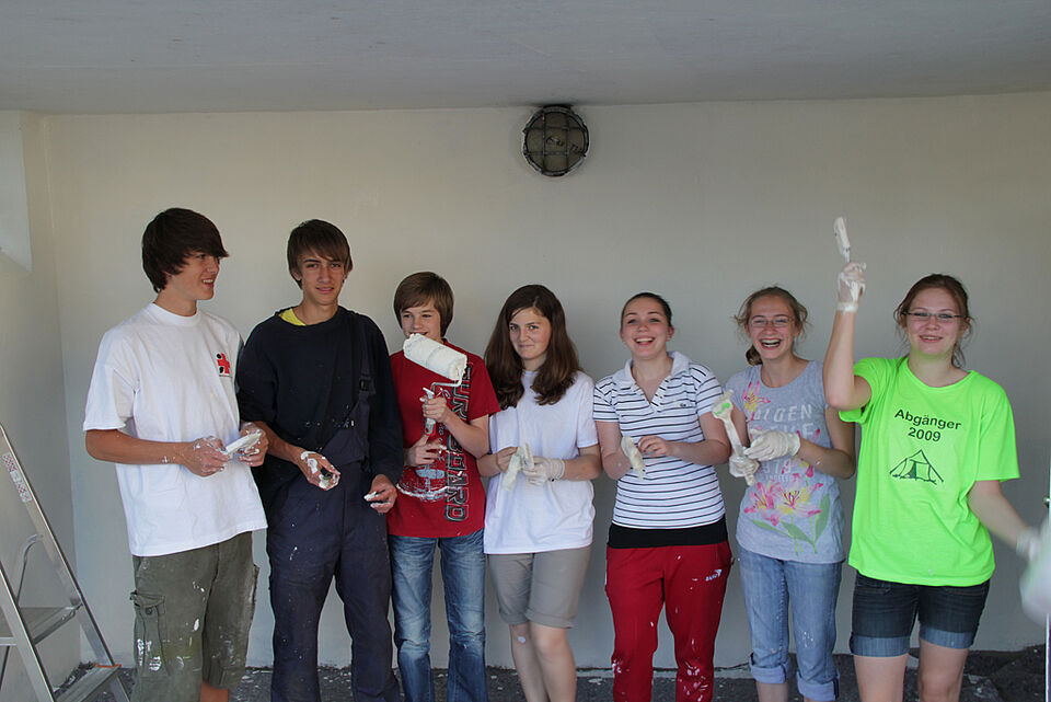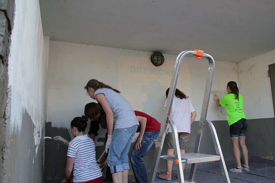 Das Dreiborner Jugendrotkreuz engagiert sich für die Gemeinde und renoviert die alte Bushaltestelle vor der Kirche.