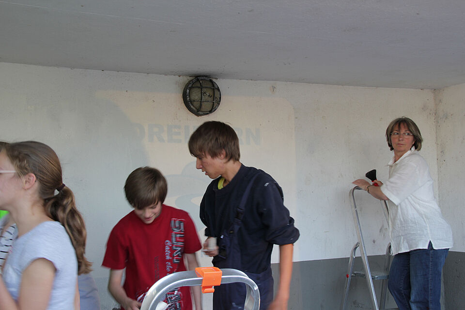 Bild DRK ZL| Dieses Mal stand die Renovierung der Bushaltestelle im Rahmen von "Unser Dorf soll schöner werden" während der Gruppenstunde an.