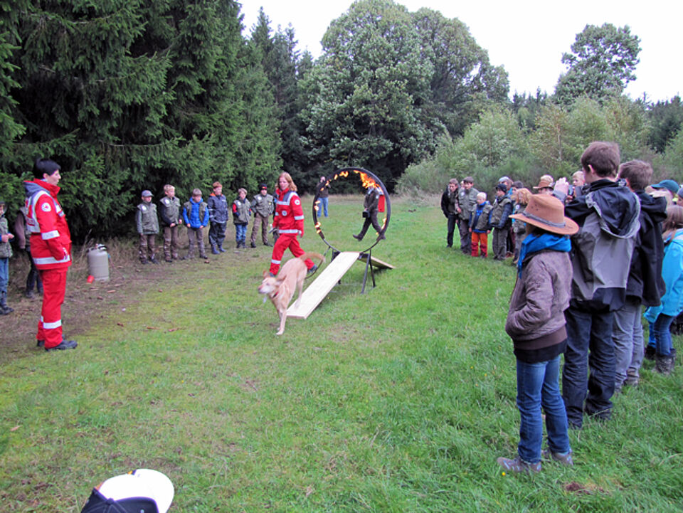 Nachmittags integrierte ein Teil der Rotkreuz-Rettungshundestaffel aus Kall sein Training in das Jahrestreffen. Den Kindern bot sich ein spannendes Programm.