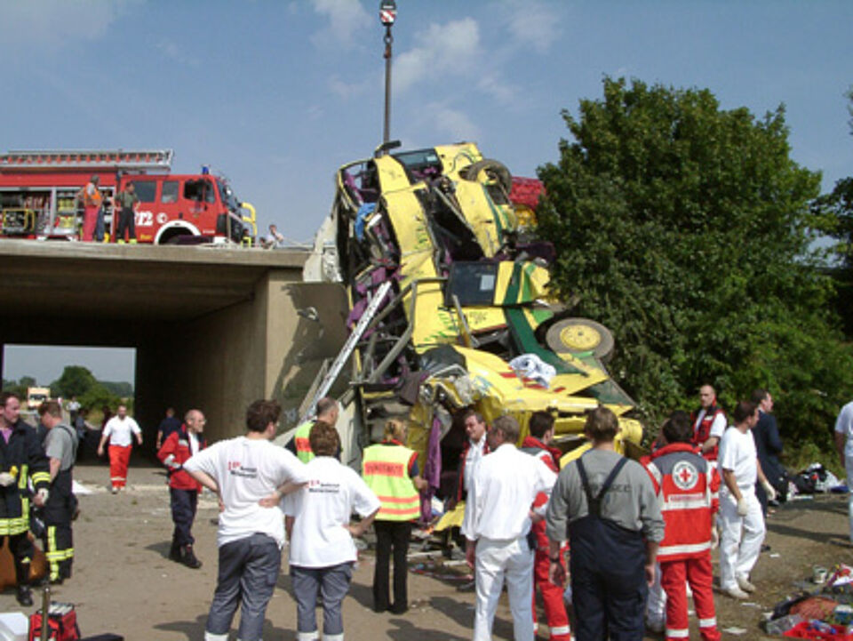 Bei extremen Fällen rückt eine ganze Gruppe des KID an, so wie bei dem schweren Busunglück 2004 mit 66 dänischen Jugendlichen. Zwei junge Dänen sterben noch am Unglücksort, 58 Businsassen werden mehr oder weniger schwer verletzt. Schuh: „Da ging die Betreuung über Tage, wir sind in die Krankenhäuser gefahren, haben mit Angehörigen gesprochen und Einsatzkräfte betreut.“ Dieser Einsatz der Krisenbegleiter ist auch in Dänemark sehr positiv von den Medien aufgenommen worden. Die Leicht- und Unverletzten wurden zur weiteren Betreuung in das Rotkreuz-Zentrum gebracht.