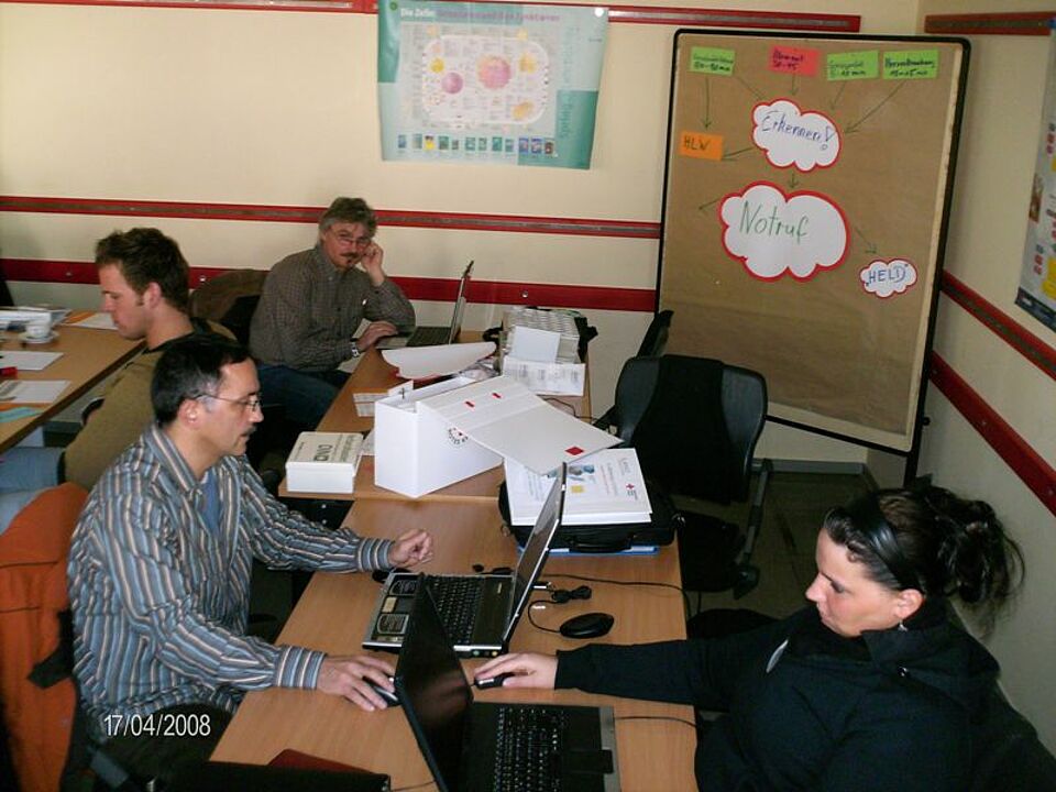 Ab Montag konnten die Teilnehmer endlich das Gelernte einsetzen und so verinnerlichen. Der Inhalt der Lehrunterlagen zur Ersten Hilfe wurde erarbeitet und vorgestellt. Anschließend galt es noch Rechtsfragen zu klären. Die letzten drei Tage verbrachte die Gruppe ausschließlich mit der Vorstellung der einzelnen Themenblöcke der Ersten Hilfe in Form von Unterrichtsbeispielen.
