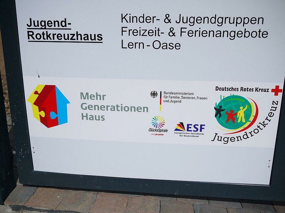 Zuvor hatten ehrenamtliche Rotkreuzler die Grundlage für die Anlage eines Spielplatzes geschaffen. Dicke Polster gehäckselten Holzes bedecken den Boden. Das mindert die Verletzungsgefahr, ist angenehm zu begehen und macht Spaß. Die Baumhausspielanlage wurde von einem Unternehmen installiert. Ruhebänke sind bereits aufgestellt.