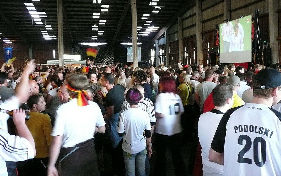 Eine Superstimmung erwartete die Fangemeinde in den Euskirchener "Bünderhallen". Auf mehreren Leinwänden konnten die Besucher das Spiel verfolgen. Spannung pur mit Freunden.