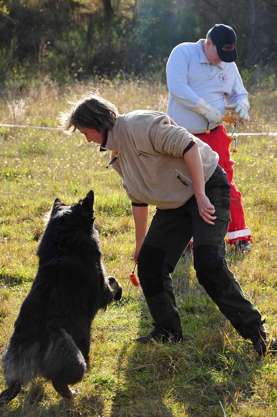 Am Samstagabend ging es für die Mitglieder der Hundestaffel in Vogelsang mit einem lehrreichen Ausbildungswochenende weiter. Ausbildungsleiterin Monika Artz konnte Sabine Gaipl gewinnen, die zum Thema "TEAM-Balance" hervorragend in Theorie und Praxis referierte. Hierbei stand das WIR im Umgang mit dem Hund im Vordergrund: TEAM-Bildung durch Einsatz unterschiedlicher Motivationsbereiche. Der Hundeführer wird zum TEAM-Führer, der Hund zum TEAM-Partner. Basis dieser Motivationslehre ist das Spiel. Durch richtiges Spielen können Mensch und Hund zum Team werden.