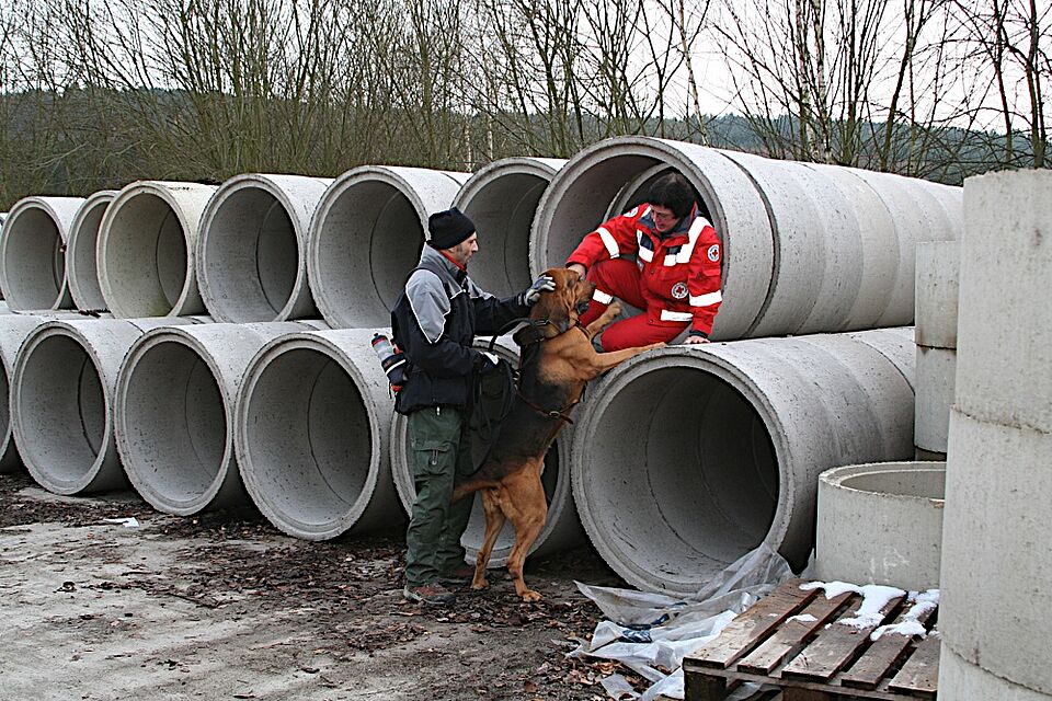Franz Küpper, der Leiter der Rotkreuz-Hundestaffel, ließ einen Trail durch die Gemeinde Kall legen. Dieser war zwei Tage alt und wurde von Jörg Weiß und seinem Bloodhound-Rüden "Watson" ausgearbeitet.