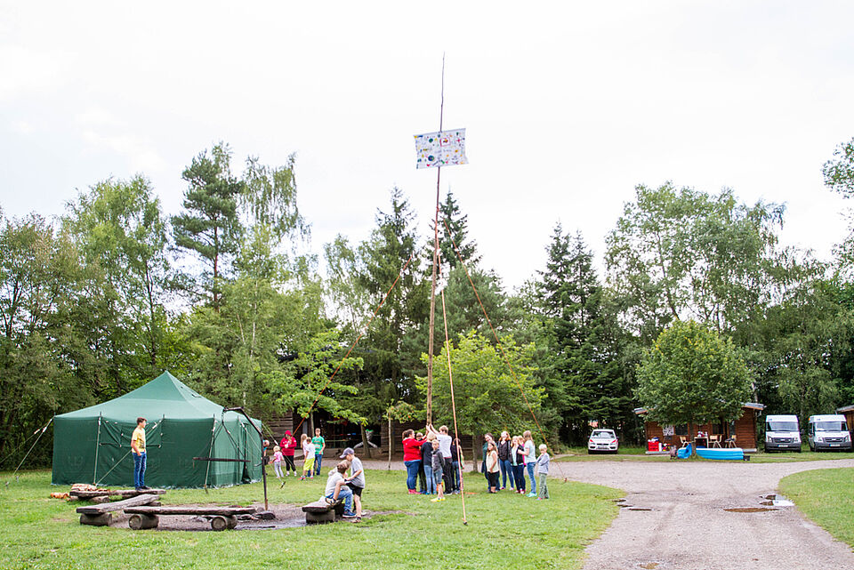 Bild JRK EU| Feierlich haben wir unsere Lagerfahne gehisst.