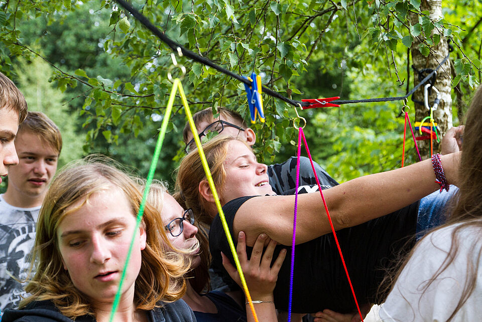 Bild JRK EU| Sich durch so ein Spinnennetz heben zu lassen erfordert eine menge Vertrauen in die Anderen...