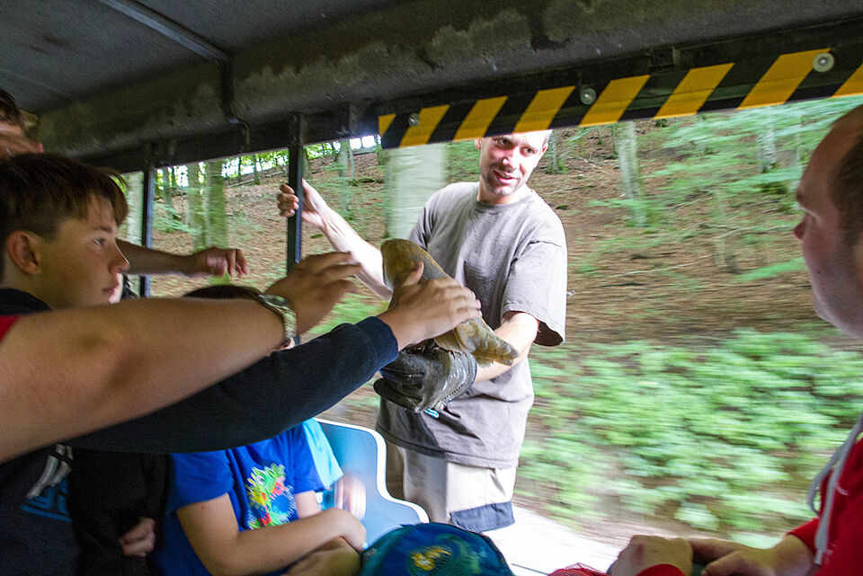 Ernzen - Am Donnerstag ging es in den Eifelpark nach Gondorf. Auf den zahlreichen Fahrgeschäften, im Wildgehege und im Streichelzoo haben die Teilnehmer eine wundervollen Tag verbracht. Auf der Rückfahrt herrschte große Ruhe in den Bussen, da alle sehr müde waren.