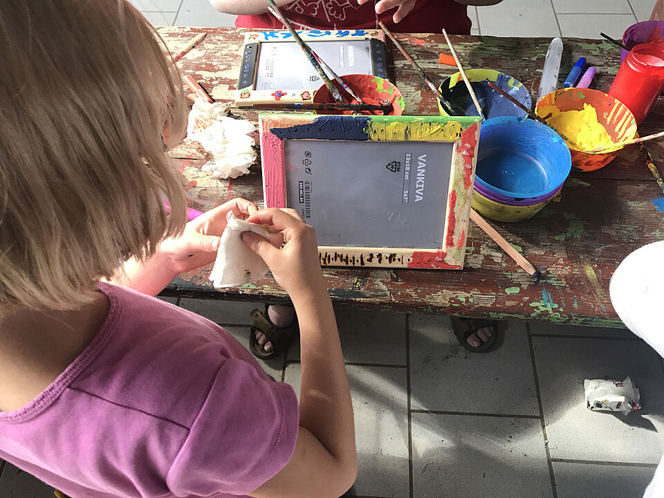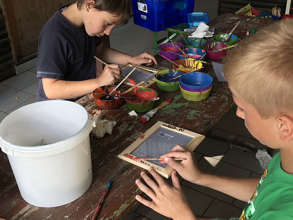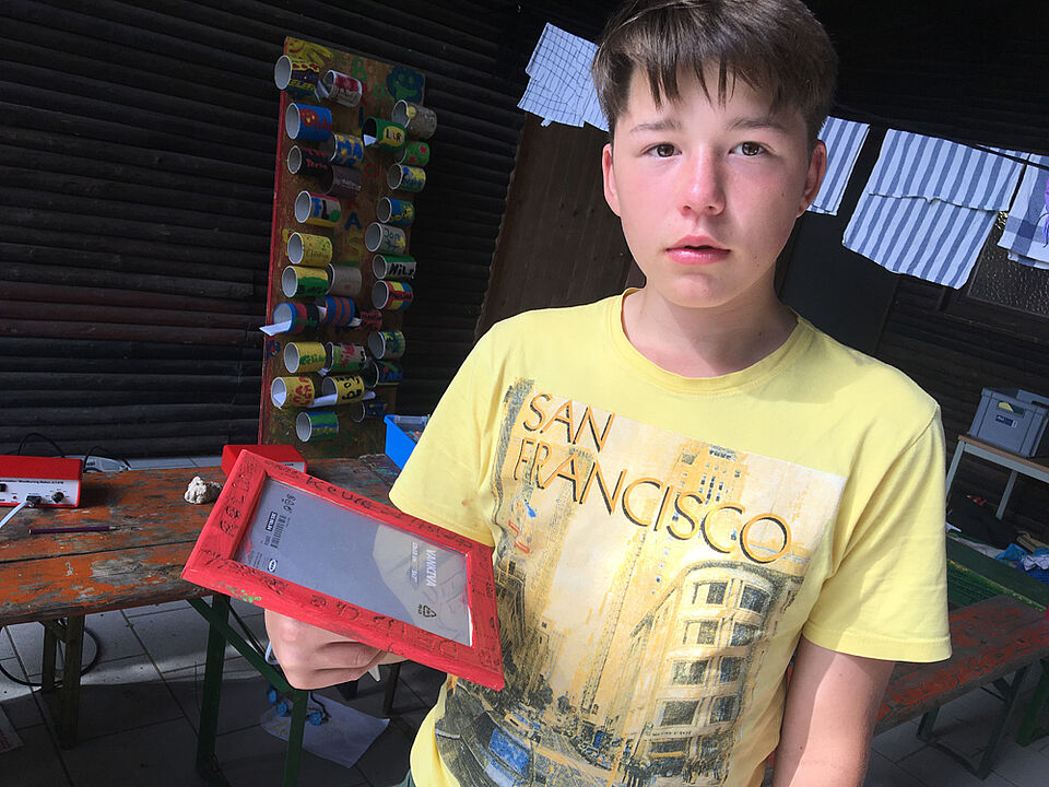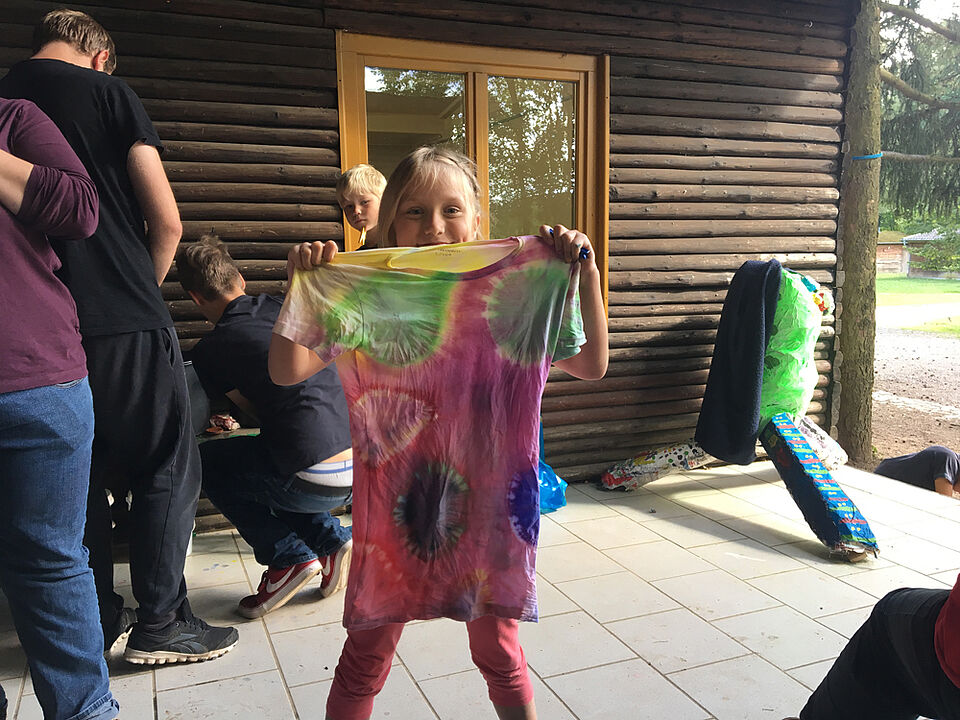Am Freitag haben wir es uns in unserem Camp gemütlich gemacht und den Urlaub genossen. Als kurzes Programm haben wir unsere Bilderrahmen für das Gruppenbild gebastelt. Parallel haben wir T-Shirts und ganz viel andere Kleidungsstücke gebatikt - dabei sind echt richtig gute Ergebnisse zustande gekommen.