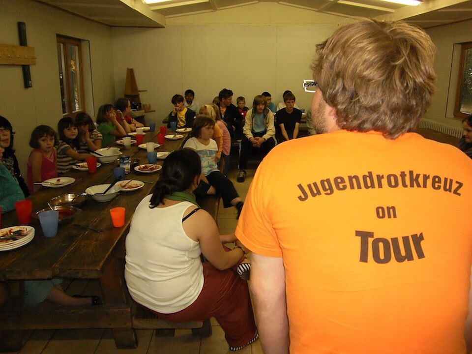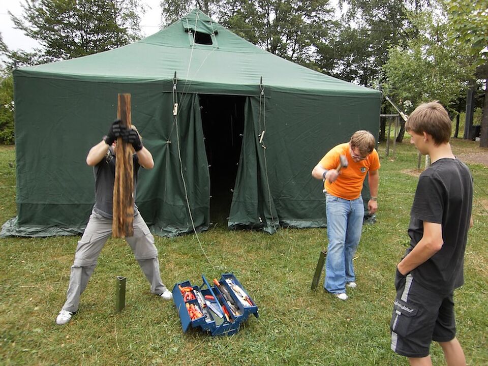 Nach einer kurzen Anreise in das Naturerlebniscamp Ernzen wurden schnell die Hütten bezogen und das Gelände erkundet. Die Betreuer verstauten die Einkäufe und bereiteten das Abendessen vor.
