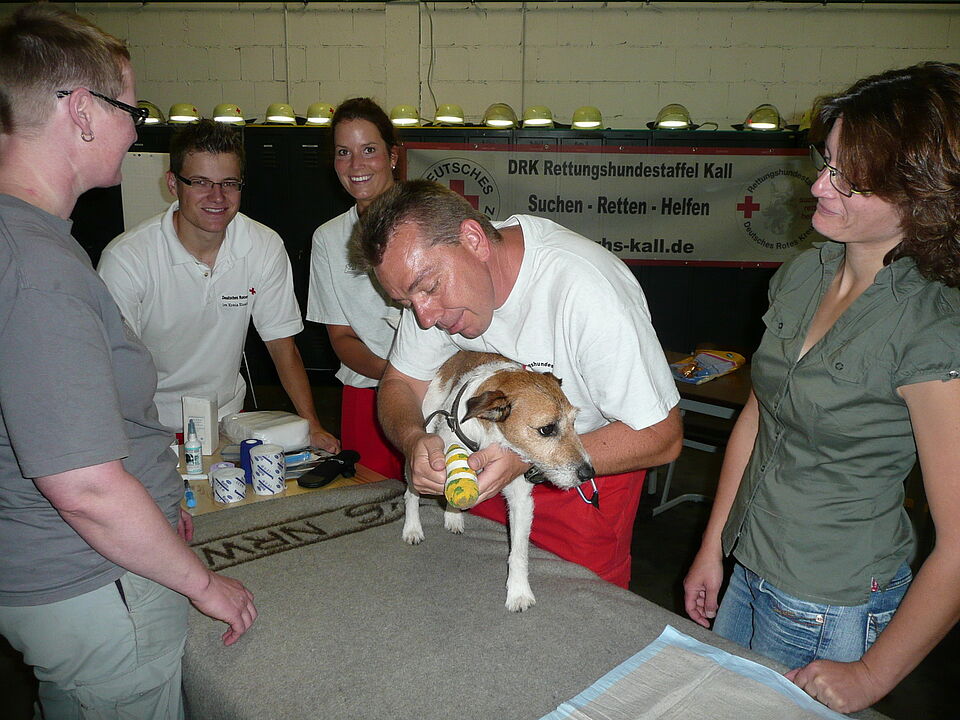 Bei Verletzungen schnell und richtig handeln ist nicht nur bei Menschen wichtig. Wie man seinem Hund richtig hilft, war Thema beim Roten Kreuz in Kall.