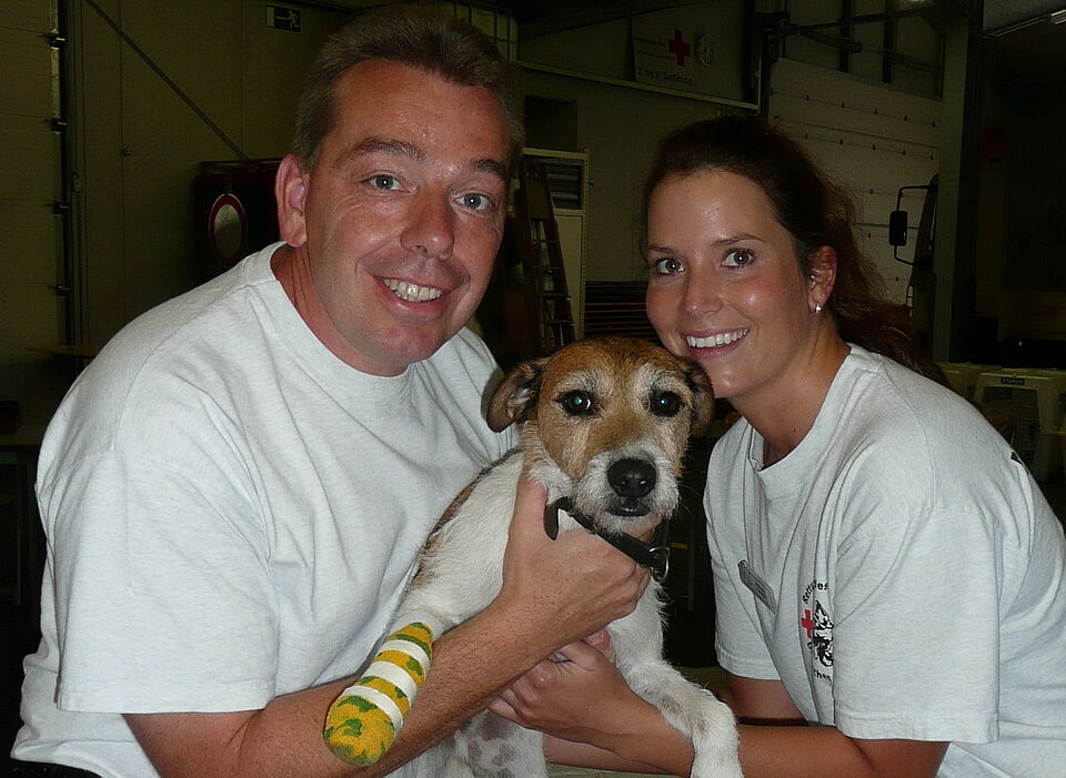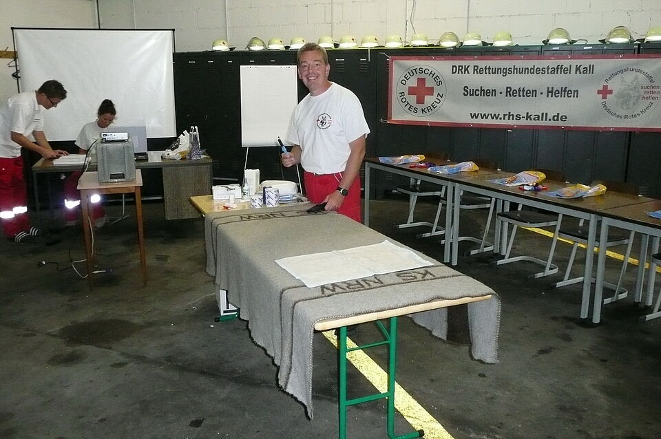 In dem gemeinsam mit der Tierarztpraxis Dr. Sonntag aus Zülpich vorbereiteten Kurs vermittelten Kursleiterin Britta Weis, seit neun Jahren Tierarzthelferin, und ihre Kollegen von der Rotkreuz-Rettungshundestaffel die notwendigen Kenntnisse und die richtigen Handgriffe. Ziel war es, den Teilnehmern einfache Maßnahmen vorzustellen, mit denen sie einen verletzten Hund erst versorgen bzw. für den Transport zum Tierarzt vorbereiten können.