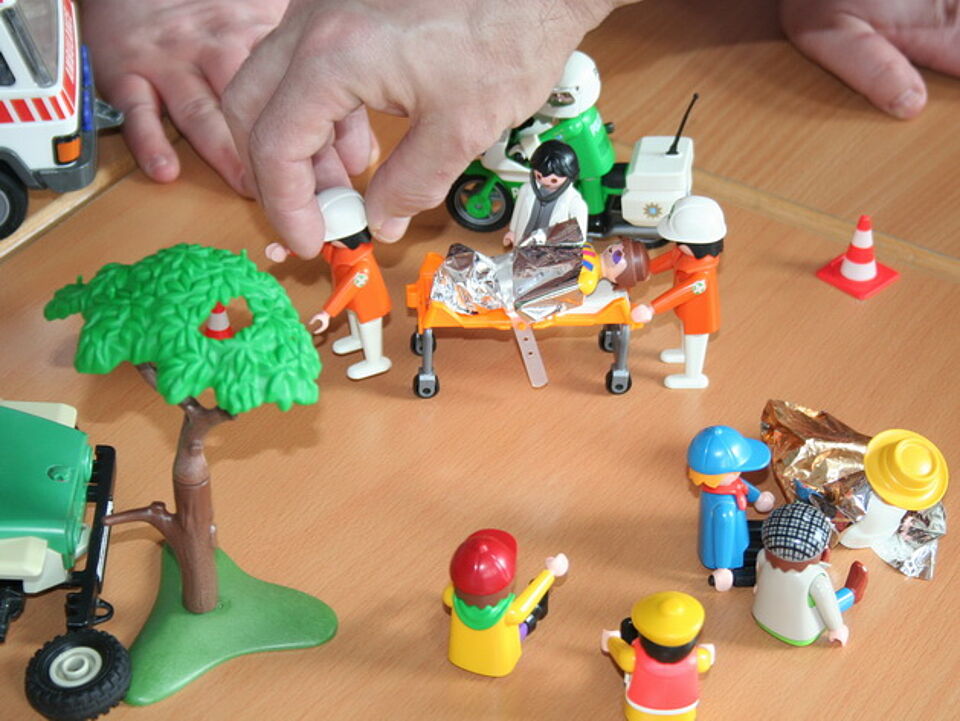 Mit Spielfiguren und -Fahrzeugen wurden verschiedene Unfallsituationen nachgestellt, die von den Teilnehmern gelöst wurden. Sie lernten den richtigen Ablauf der Hilfsmaßnahmen und die wichtigsten lebensrettenden Handgriffe. So wurde später das praktische Retten aus dem Auto zu einer gemeinsamen Übung, bei der alle Teilnehmer mit Freude dabei waren.