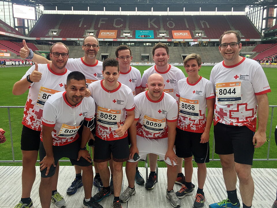 Kreis Euskirchen – Eine Runde im Rhein-Energie-Stadion laufen – das ist wohl der Traum eines jeden FC-Fan. Und so hatten die Anhänger des 1. FC Köln unter den 84 Mitgliedern des Deutschen Roten Kreuzes im Kreis Euskirchen, die kürzlich am B2Run-Firmenlauf teilgenommen hatten, ihren Spaß. „Die haben sich nicht nur gefreut, die haben sogar gesungen“, berichtete Heike Iven, Leiterin der Familienbildung beim DRK-Kreisverband, heiter.