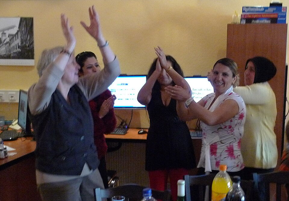 Euskirchen - Nach absolvierter Abschlussprüfung am Freitag, 24. April, feierten die Teilnehmer des Integrationskurses ausgelassen im Café Henry des Euskirchener Rotkreuzhauses. 18 Teilnehmer hatten an der Prüfung teilgenommen, auf die sie sich fast sieben Monate gemeinsam mit ihren Sprachlehrerinnen vorbereitet hatten.
