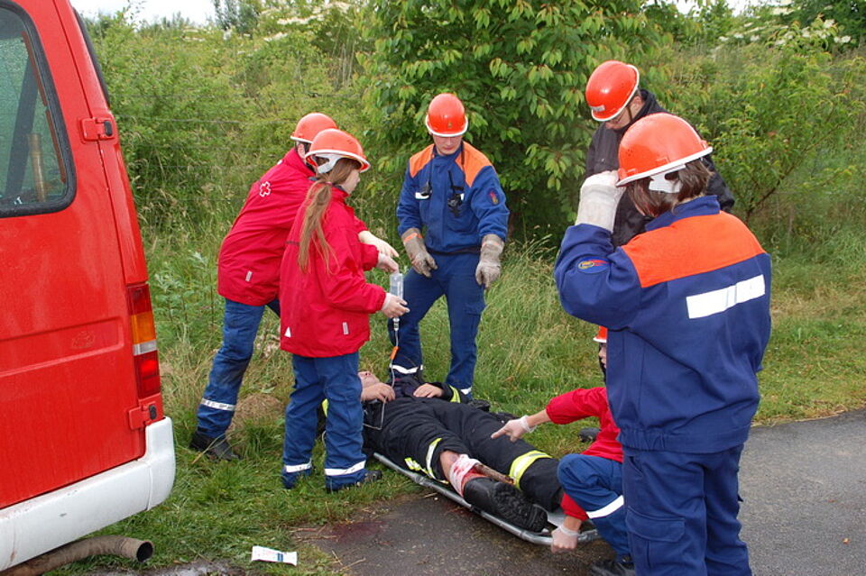 Absoluter Höhepunkt der 24-Stunden-Übung war ein Verkehrsunfall mit vier Verletzten, die eigens dafür geschminkt wurden. Beim Abschlusseinsatz, konnten die Jugendlichen ihren Eltern zeigen, wie toll das Team funktioniert