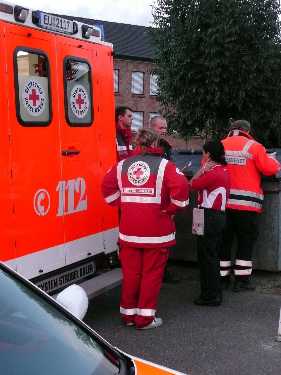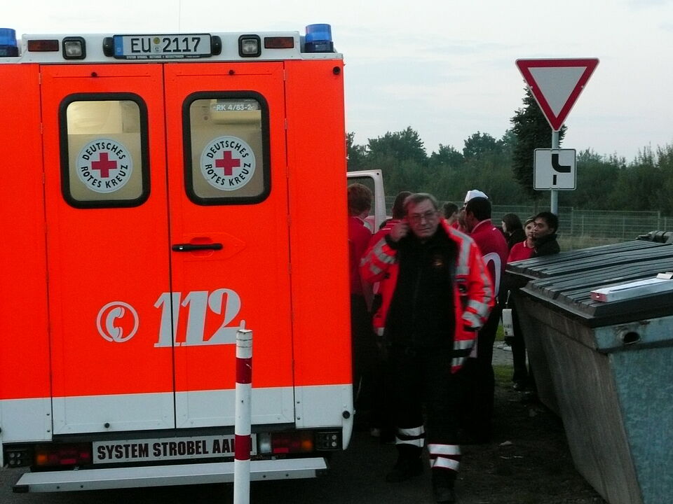 Bild DRK ZR | Rettungswagen und das Notarzteinsatzfahrzeug aus Euskirchen waren auch zur Sicherung der Einsatzkräfte am Ort.