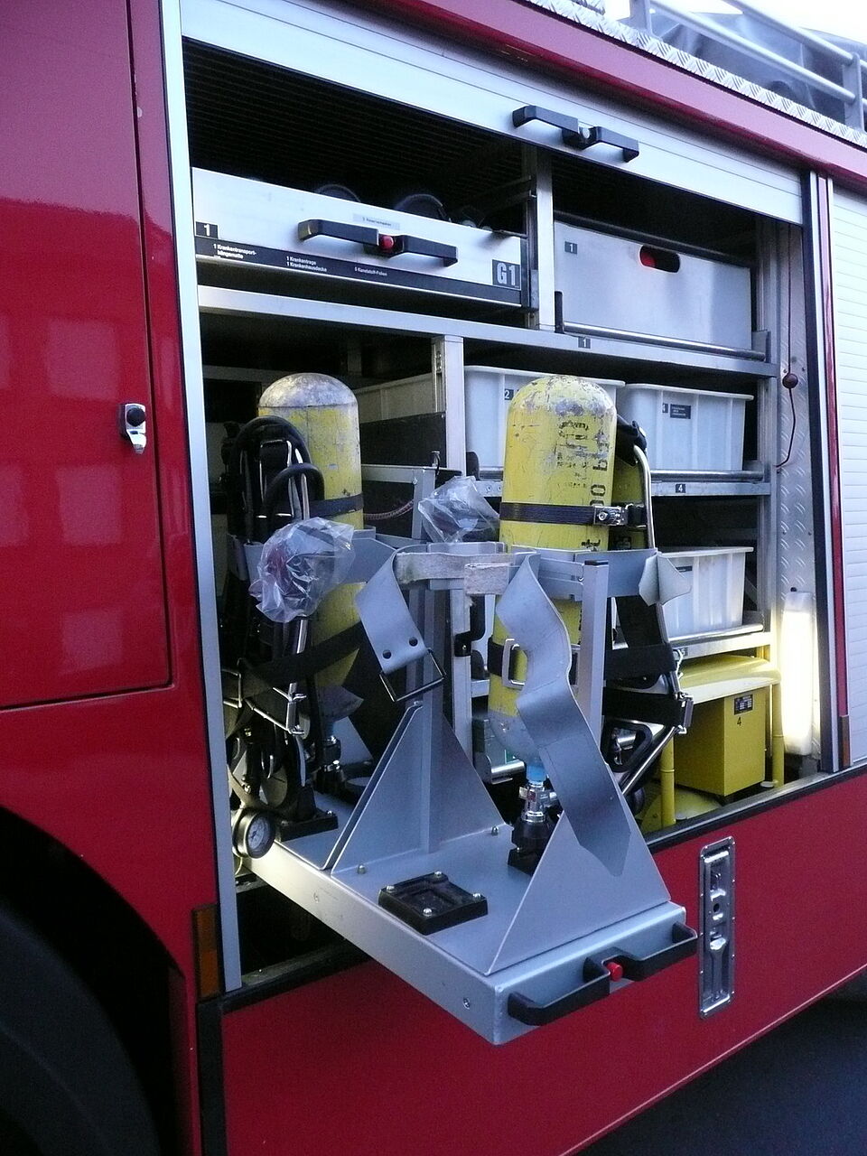 Bild DRK ZR | Atemschutzgeräte finden sich auf fast allen Einsatzfahrzeugen der Feuerwehr, auch auf dem Rüstwagen II des Kernstadt-Löschzuges.