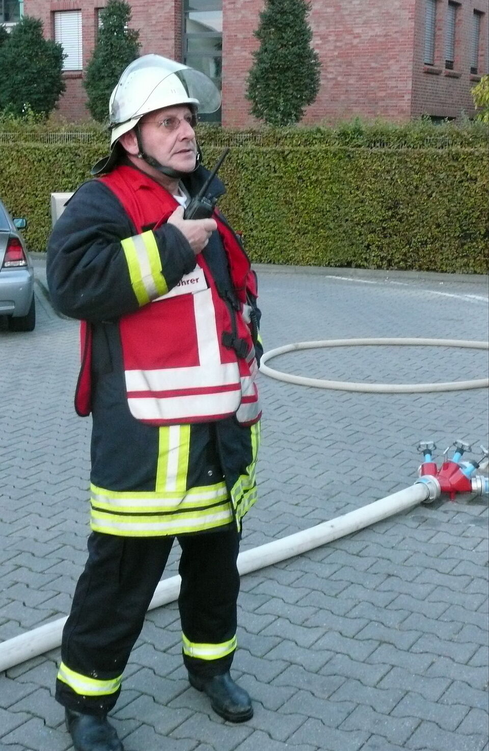 Bild DRK ZR | Brandoberinspektor Peter Neuburg, Zugführer des Löschzuges Zentrum, koordinierte den Einsatz seiner Mannschaft.