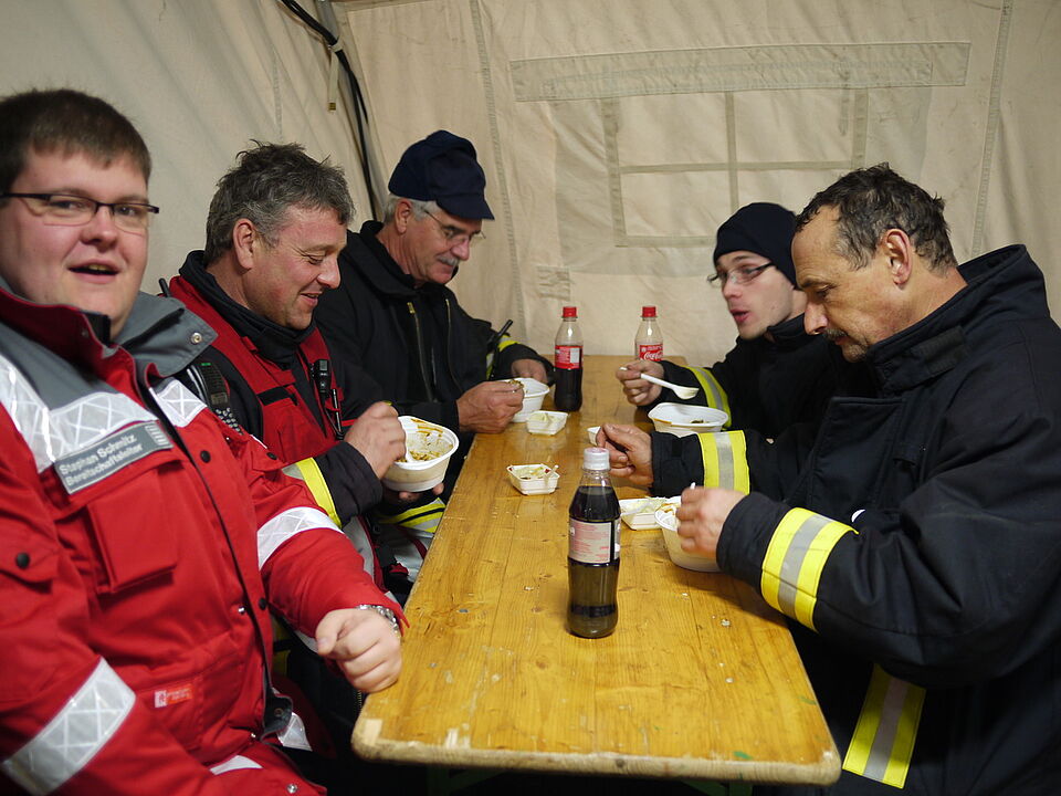 Seit fast 24 Stunden sind die Euskirchener Feuerwehrleute jetzt schon in Dom Esch im Löscheinsatz. Da sind Kameradschaft und Teamarbeit besonders wichtig. Wenn einer müde wird, trotzdem durchhalten, aber auch früh genug ablösen, gute und schmackhafte Verpflegung bereitstellen, für Licht sorgen, wenn es dunkel wird, helfen wo eine Hand gebraucht wird! Wenn alle anpacken geht das alles einfach besser. Rotkreuz-Kreisgeschäftsführer Rolf Zimmermann: "Danke für die tolle Zusammenarbeit! Ihr seid alle Spitze!!!"