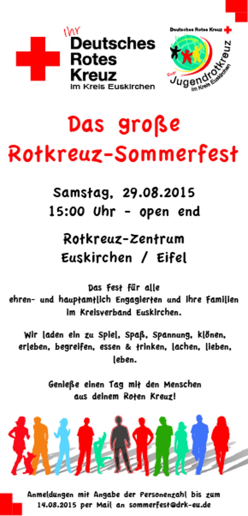 Am 29.08.2015 laden wir alle ehren- und hauptamtlichen Engagierten Rotkreuzler zum großen Rotkreuz-Sommerfest ein!