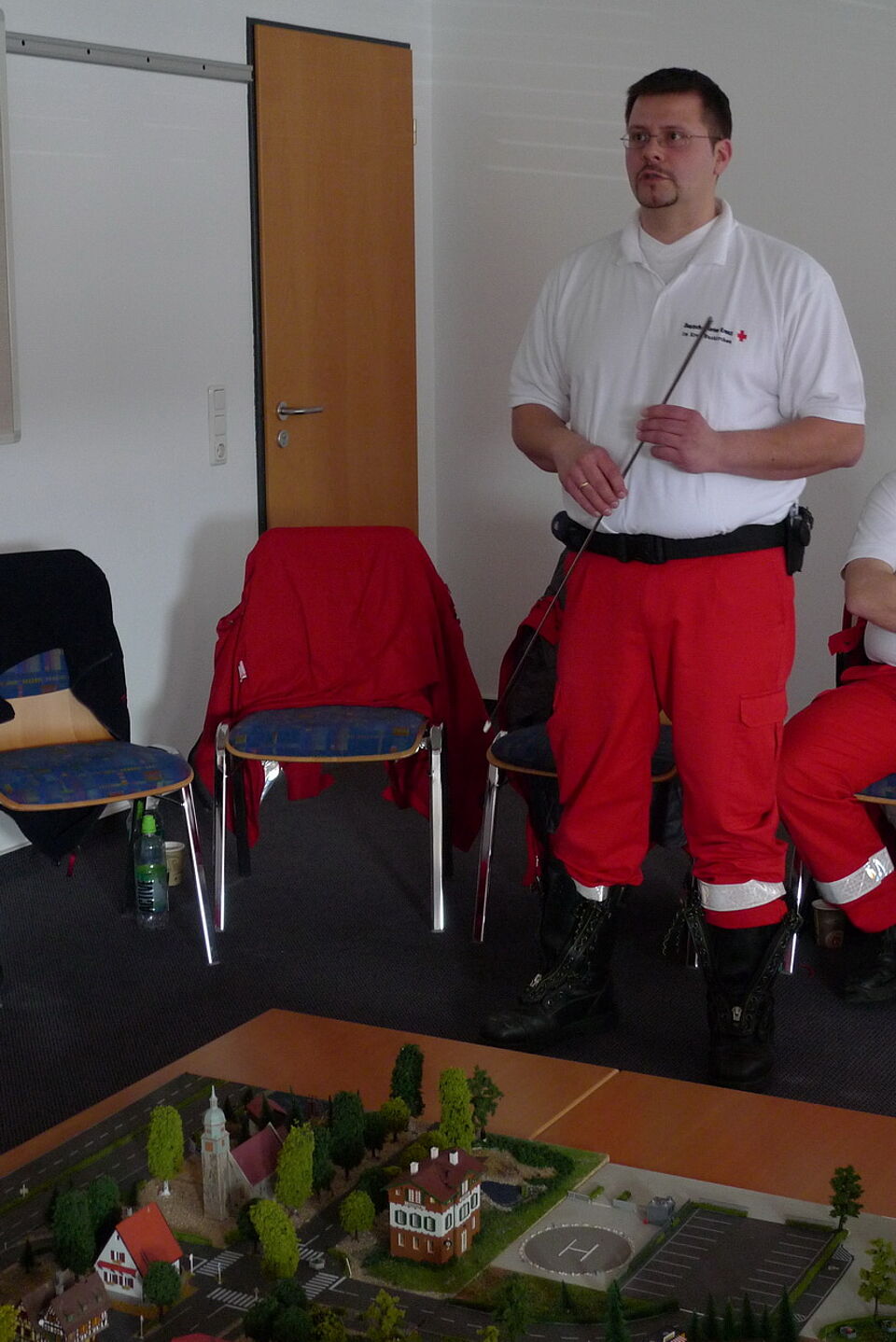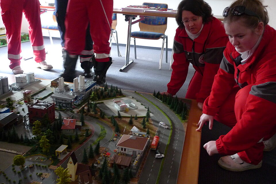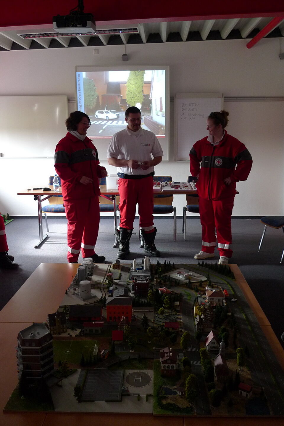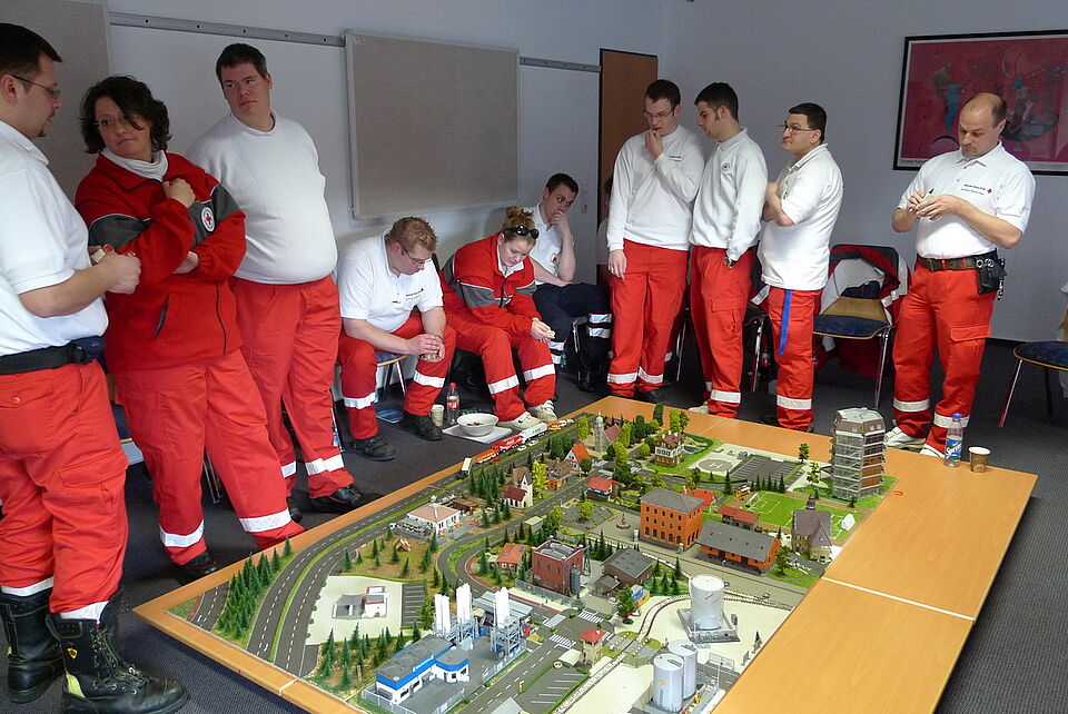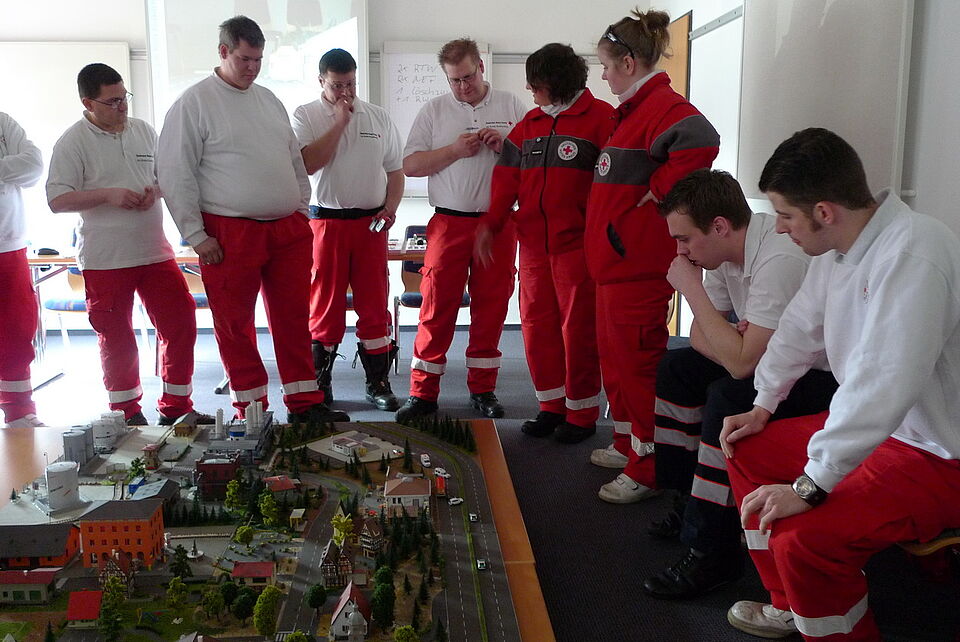 Bild DRK ZR | Bei der Fortbildungsveranstaltung werden die Möglichkeiten am Modell durchgespielt, um die beste Lösung zu finden.