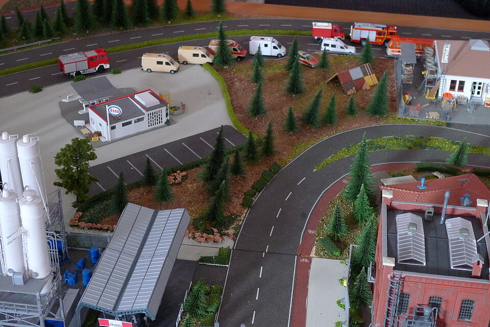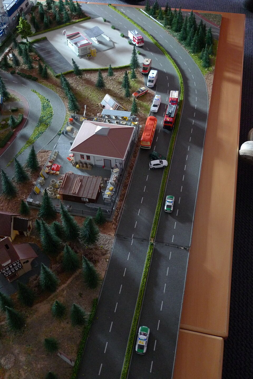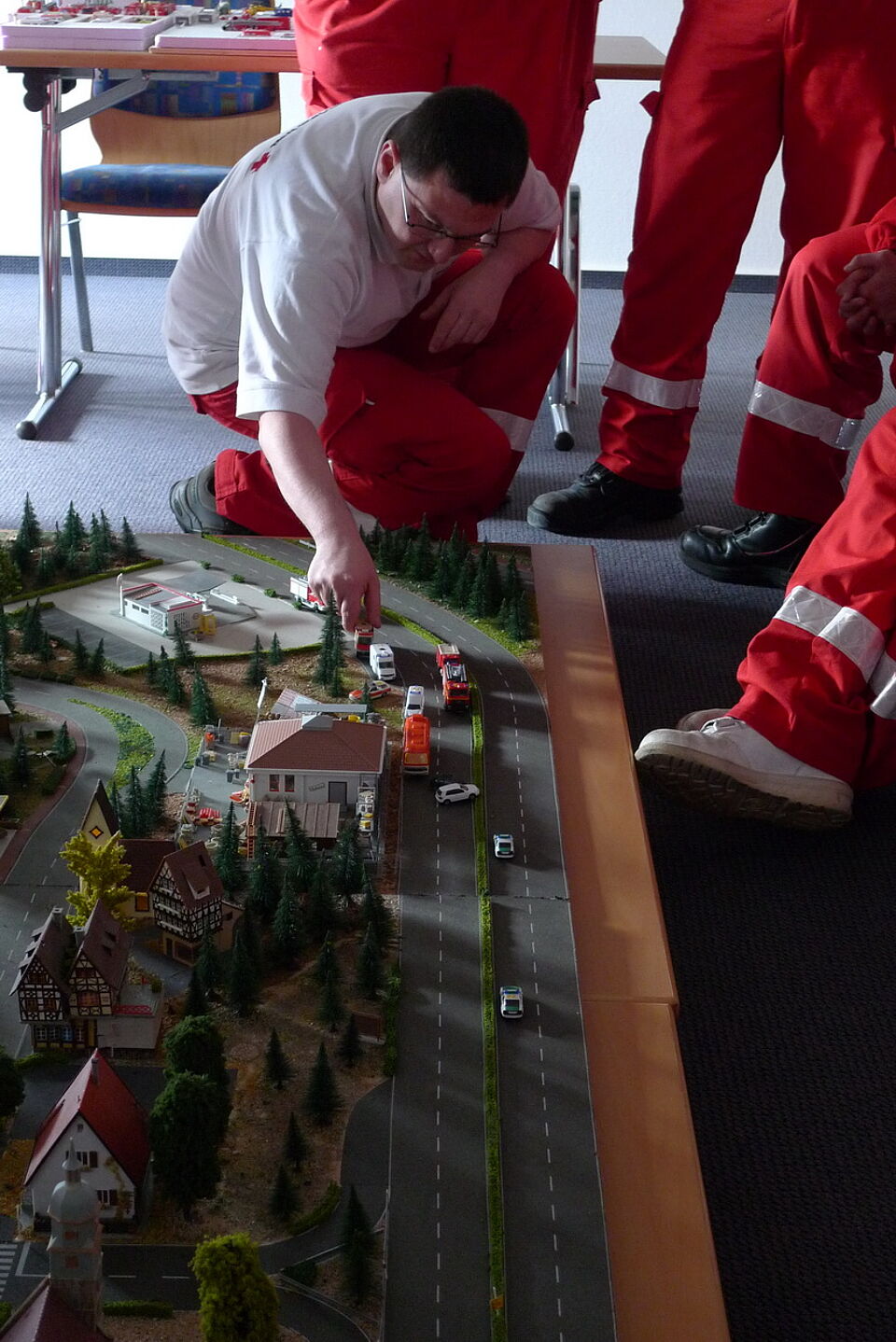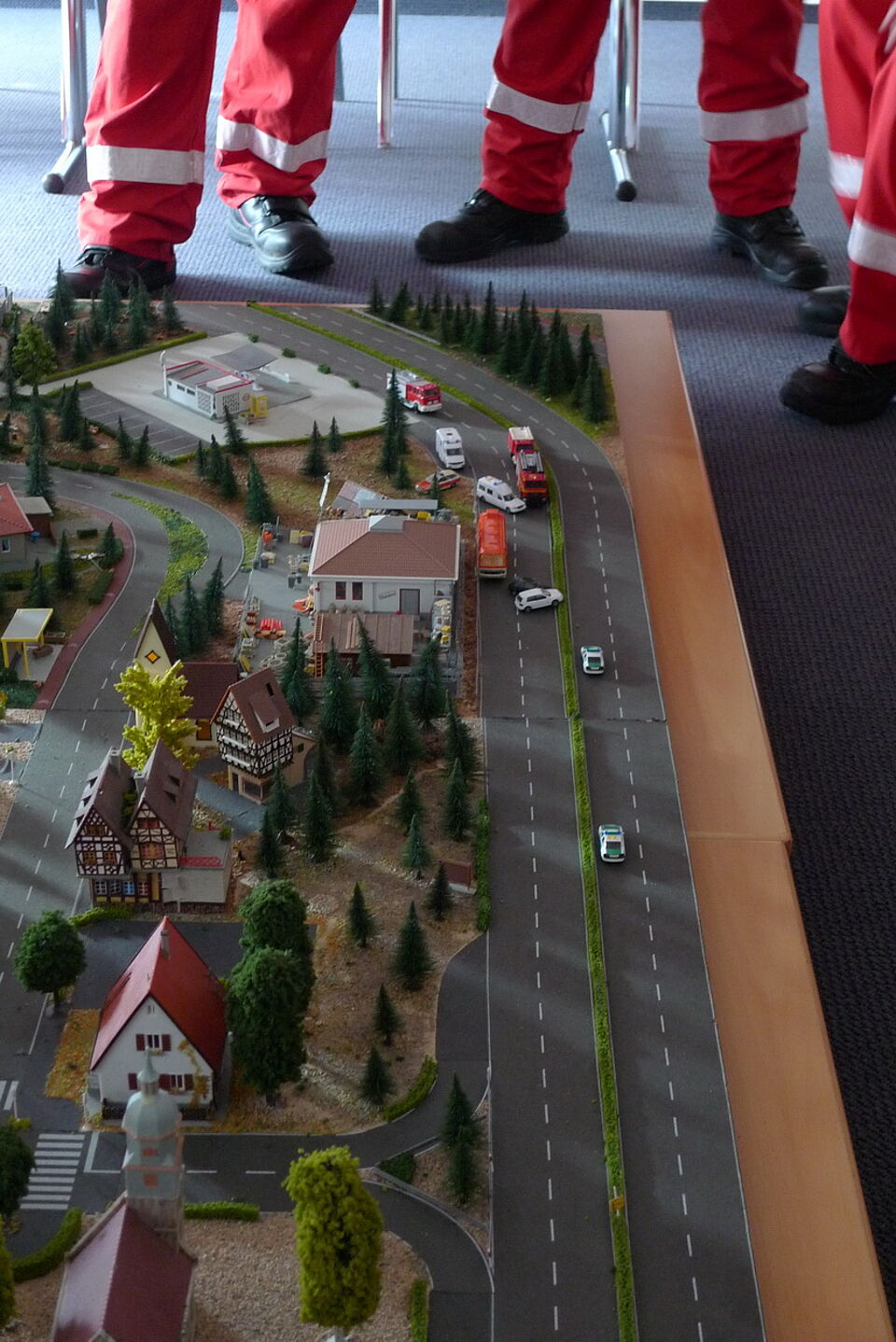 Bild DRK ZR | Die Unfallsituation und der Einsatz des Rettungsdienstes und der Feuerwehr werden am Modell Schritt für Schritt nachvollzogen.