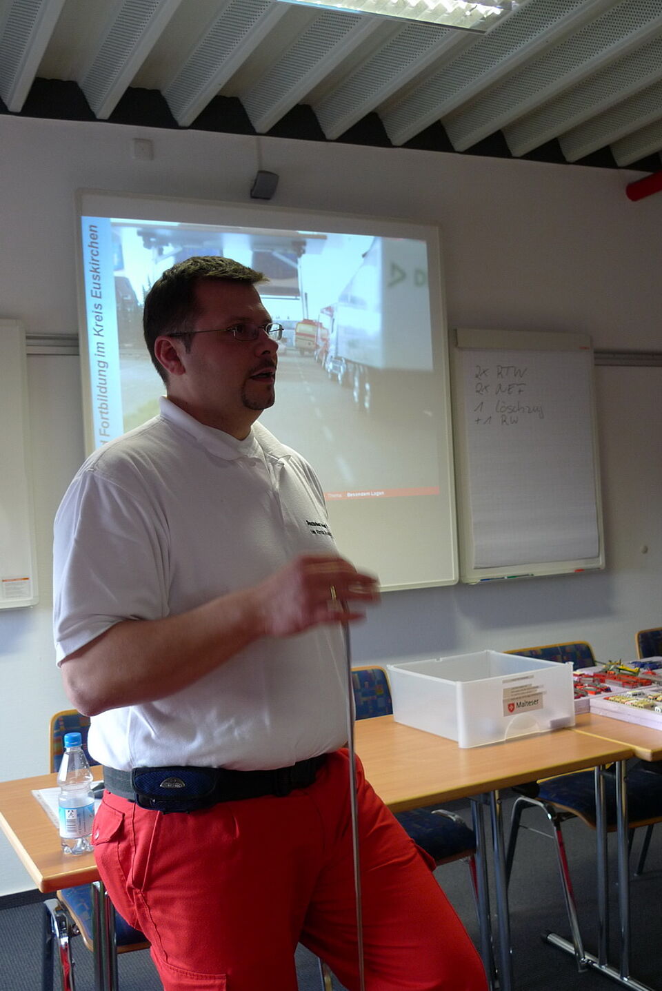 Bild DRK ZR | Daniel Heitmann, Lehrrettungsassistent und Wachleiter der Rettungswache im Rotkreuz - Zentrum, leitet die Fortbildung.