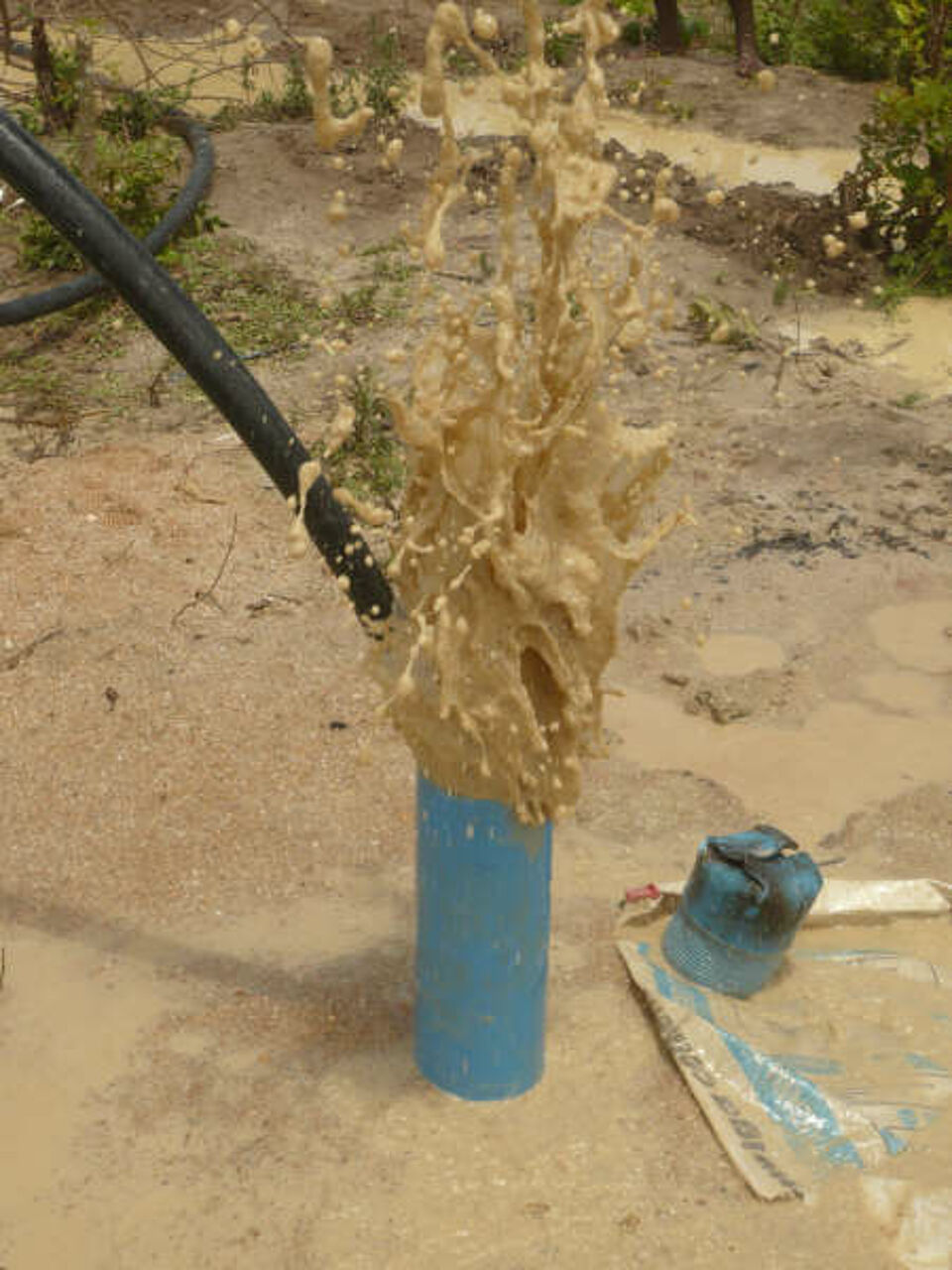 Bild Eifel Aid | Das war gar nicht so einfach. Durch harte Gesteinschichten wurde die Bohrung bis auf eine Tiefe von 75 Metern voran getrieben.